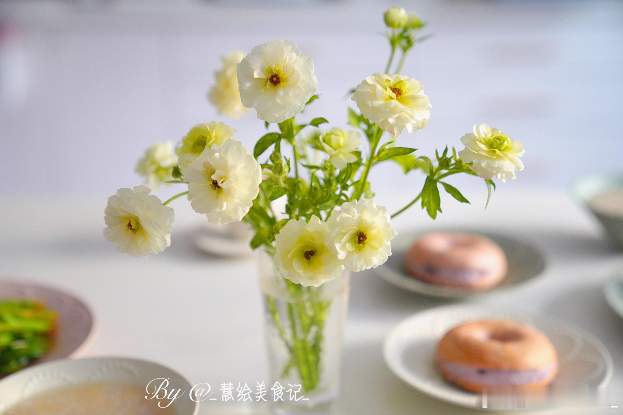 周四早呀早饭白灼芥兰、木耳炒山药、杂粮粥、蓝莓贝果、拿铁咖啡、小番茄~温暖的时光