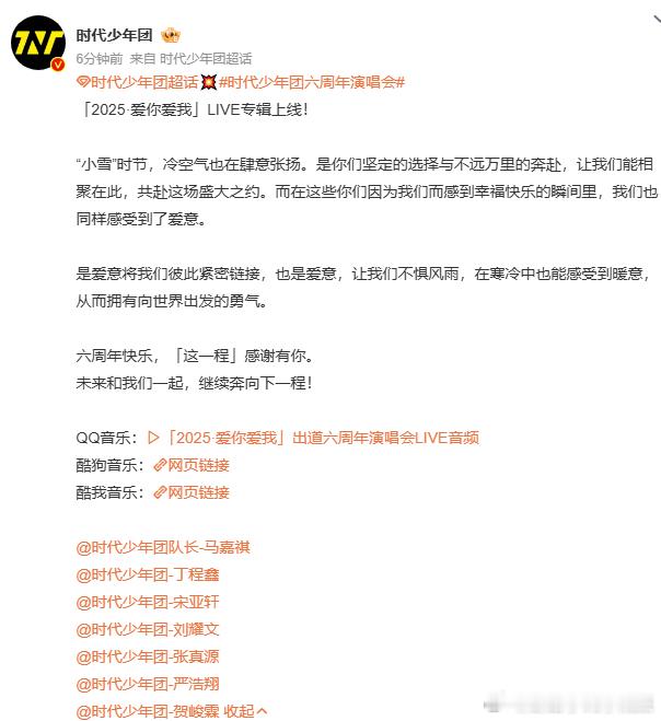 时代少年团爱你爱我live专辑上线时代少年团6周年演唱会live专辑上线 时代少