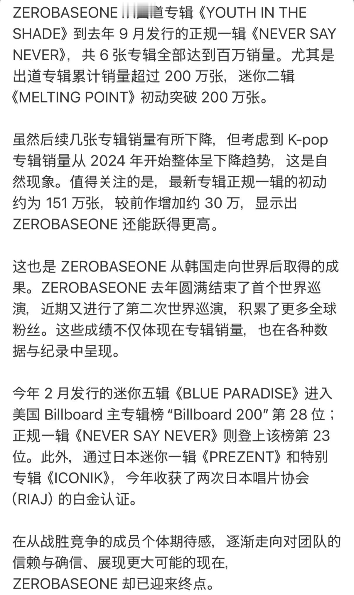 ZB1 解散通稿来了省流总结:ZB1会在三月解散 wk1想续约但是成员公司要求解散 想把专辑卖到1000w