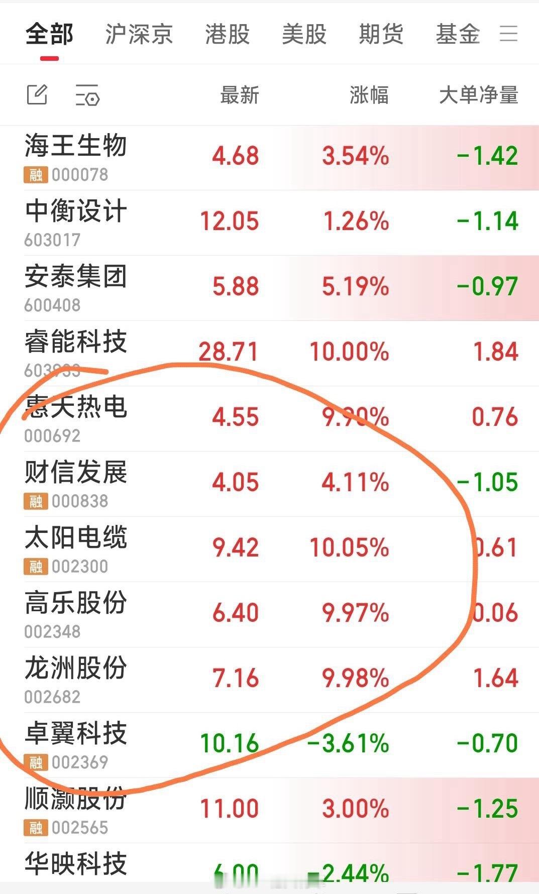 【大换手】今天关注了惠天热电,财信发展,太阳电缆,高乐股份,龙洲股份。原票仅留下卓翼科技。炒股太难了,弱了就坚决走,只关注强势票。