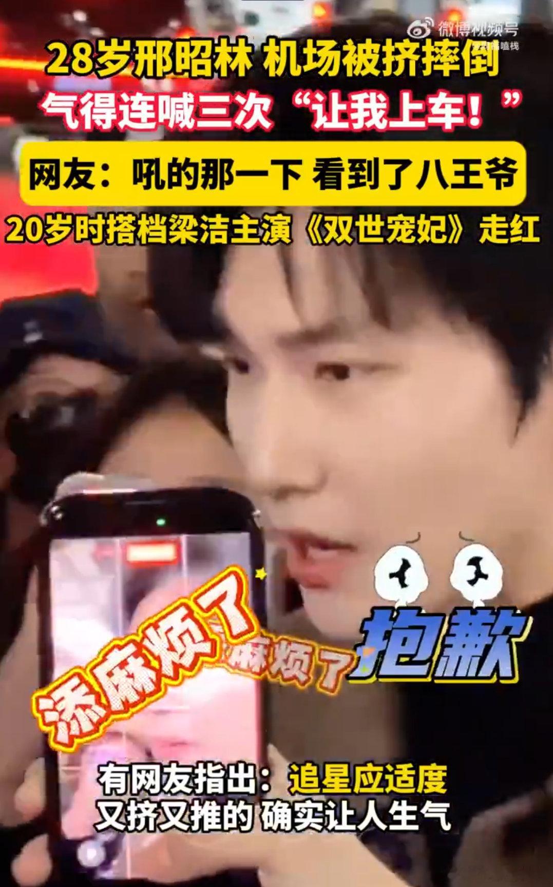 邢昭林机场被挤摔倒邢昭林这也太惨了!机场被私生围堵到直接摔倒,一直喊 “让我上车
