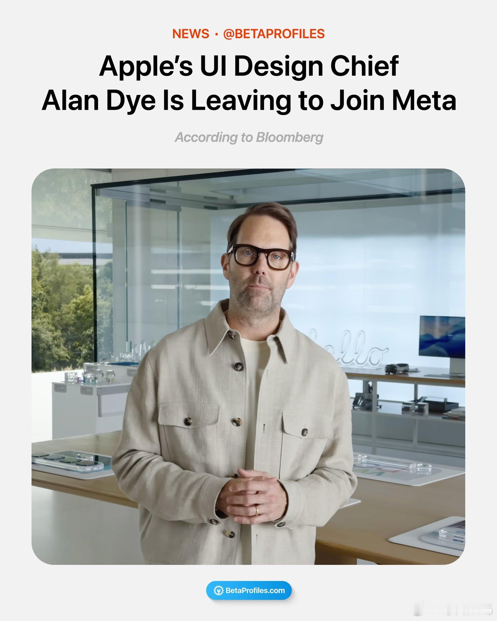 苹果设计总监Alan Dye宣布离职,加入Meta公司。他还是挺厉害的,曾参与操刀“灵动岛,visionOS、液态玻璃”等设计 苹果顶级设计师投奔Meta
