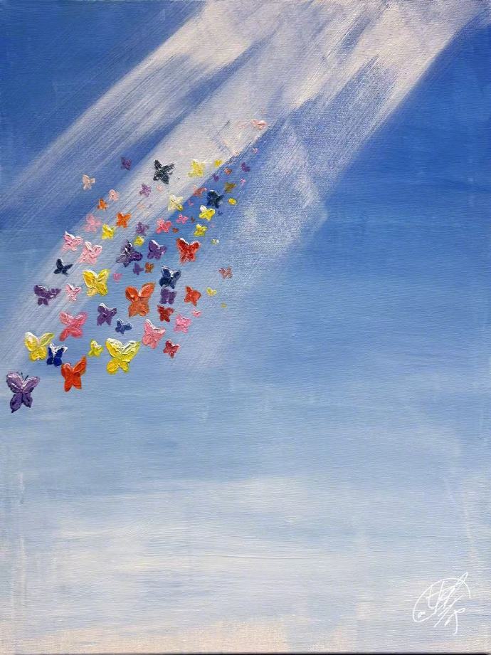 牛啊,狙击蝴蝶三张海报油画 是陈妍希自己画的!这么厉害,画画的人真的得超级有耐心