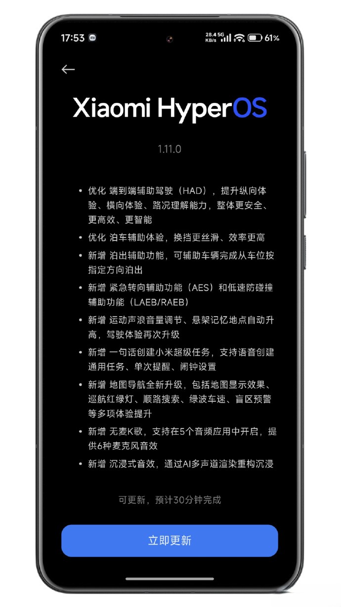 刚刚提到SU7获奖 傍晚我的 SU7 刚好收到了 1.11 版本更新,赶紧升级 明天要去广州,到时候测试一下新的小米HAD增强版发布,听说很好用? 所以 SU7 都更新了,YU7 要等到什么时候啊啊啊