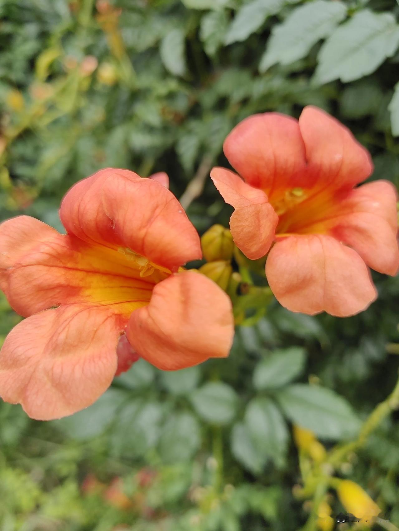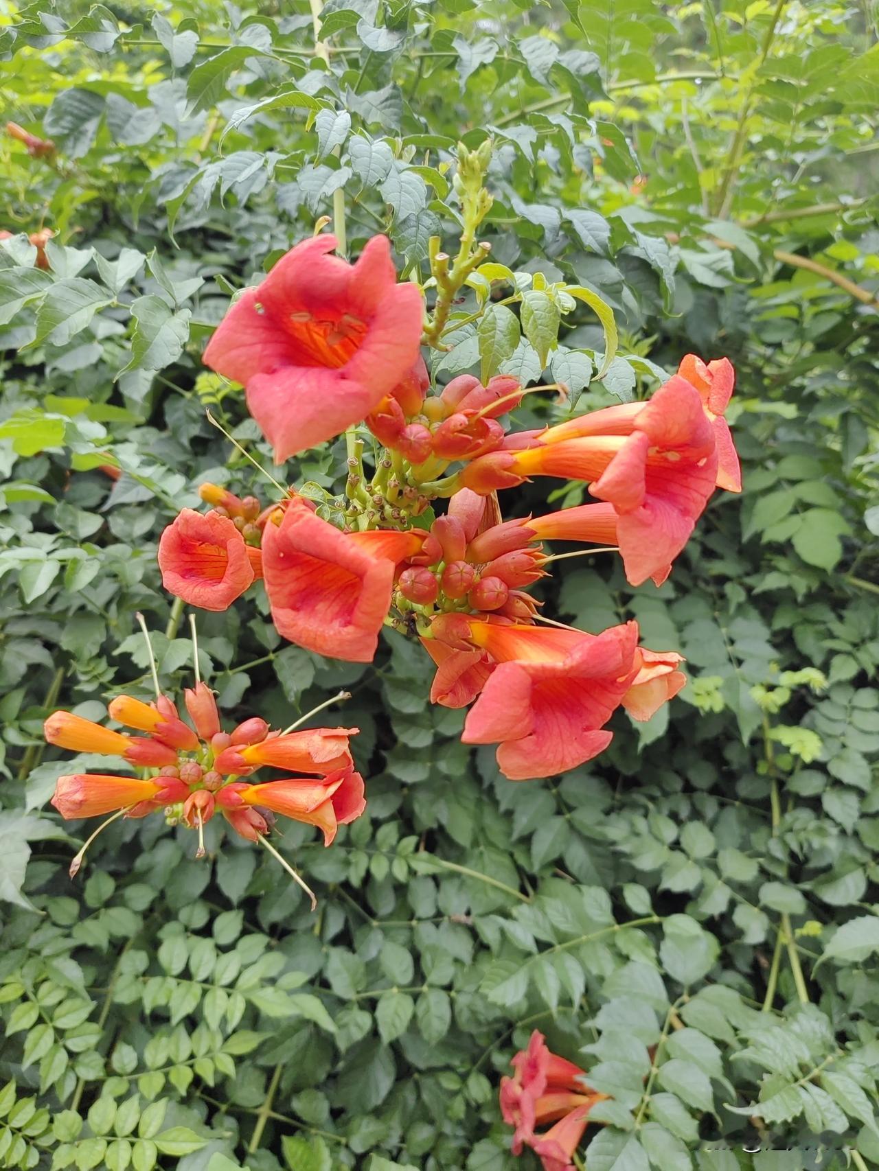金秋十月, 美丽的街心花园。 凌霄花盛开, 美丽的花随手拍。 美丽的景色,
