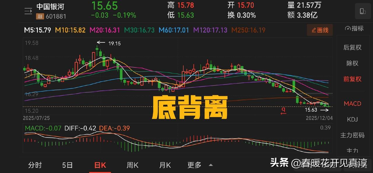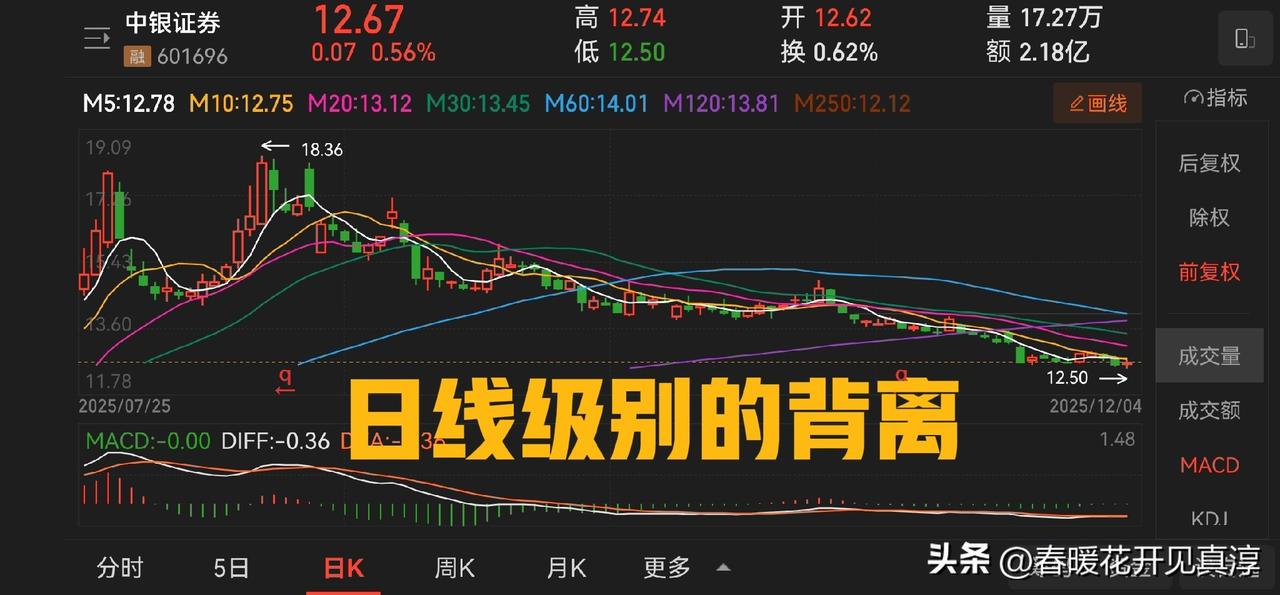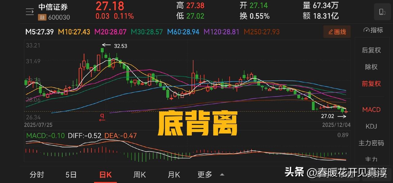 注意:券商板块出现日线级别底背离。券商板块以及中银证券、中国银河、中信证券等典型券商代表多数出现这一特征,与此同时仍然在极度缩量,意味着距离变盘的时间越来越近。 国庆节前后我就说,四季度只需要一个月,甚至是两个周,我们就可以过一个好年。 回到国庆前后的小高点,中银证券大约需要四个涨停回到,中信证券和中国银河大约需要两个,这就是对时间和空间的基本判断。 继续持股待涨,毕竟,耐心是一种美德。