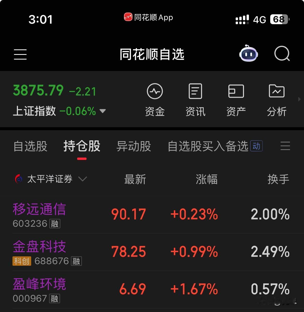 收盘了,下午波澜不惊,大盘顶住了没有跳水。科技股表现还不错。我出掉一半金盘和全部