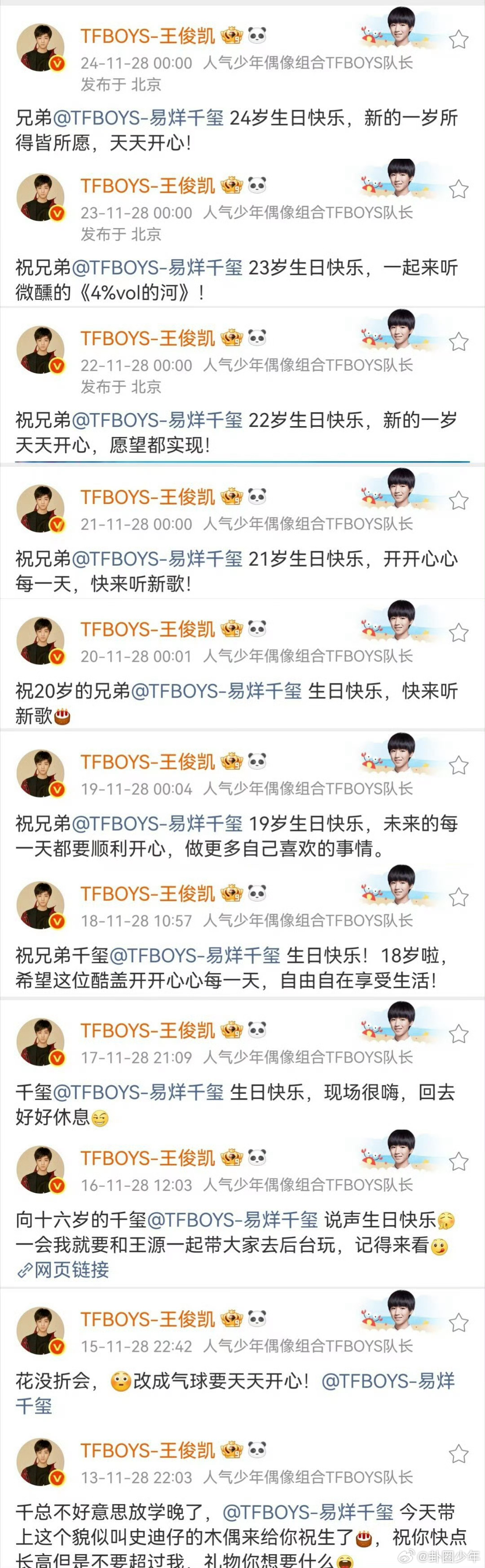 王俊凯连续11年为易烊千玺庆生 狠狠被这份情谊打动!王俊凯连续11年发文为易烊千