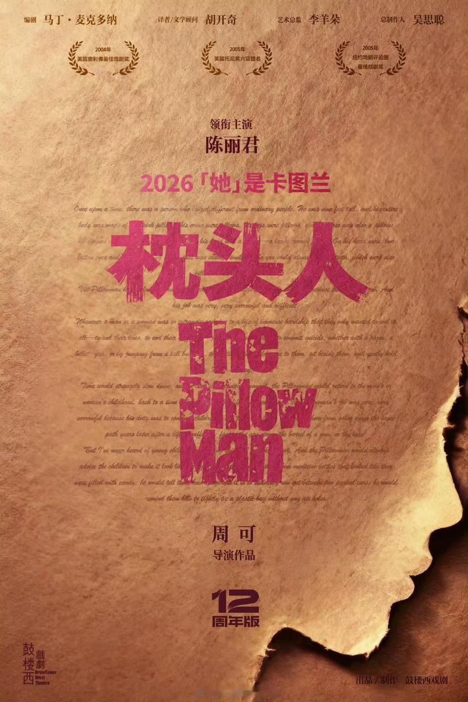 陈丽君话剧《枕头人》12周年版重磅官宣还是话剧首秀!陈丽君话剧首秀