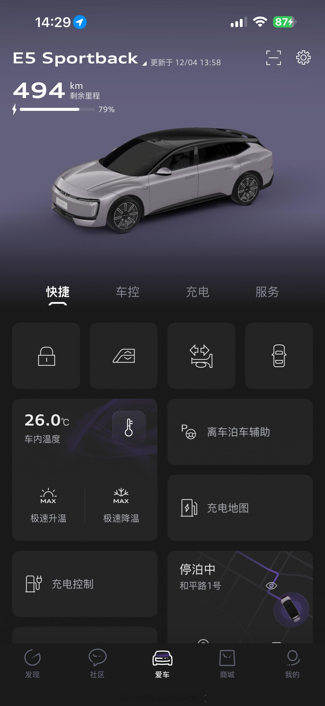 APP先ota了,最大变化就是充电ing的状态,在首页马上显示的状态,更加直观了。图1是新版,图3图4是旧版,首页充电在左上角,不太明显,经常习惯动作点到二级界面去看。大家车的奥迪e5sportback