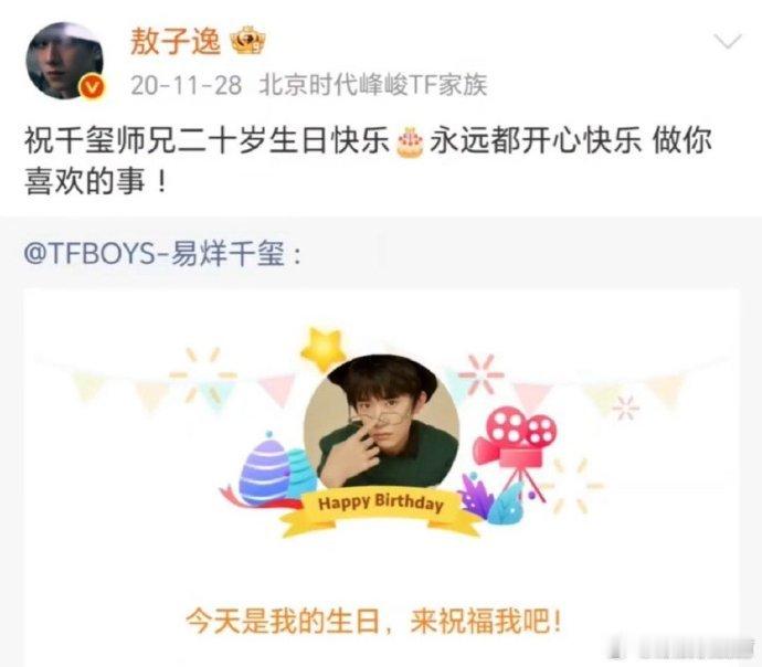 敖子逸连续10年为易烊千玺庆生敖子逸连续10年为易烊千玺发文庆生 乖巧子逸太有心