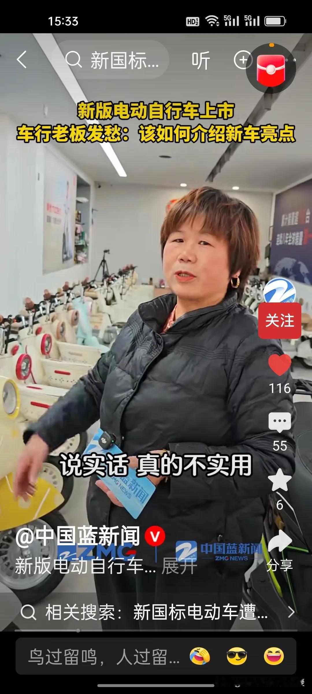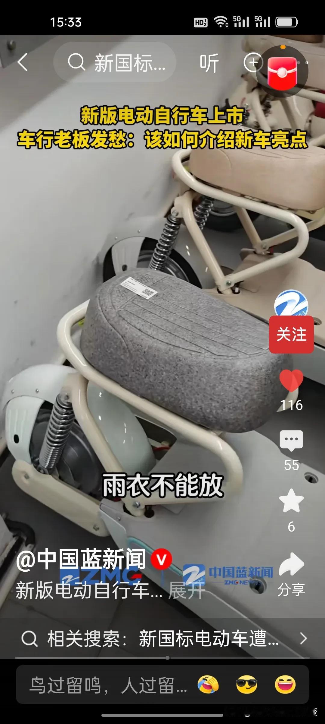 看图1-8,浙江记者采访车行老板,老板犯愁该怎么介绍新国标电动自行车的亮点,雨衣不能放,充电器不能放,再看图9-12,一女生在介绍设计新颖的电动三轮车,后座可以折起来,空间大,方便放货物,底部箱子还能放东西。买菜,送货,接娃的需求场景都能满足,民间还是有高手啊,把电动三轮车的功能已经开发到极致了!