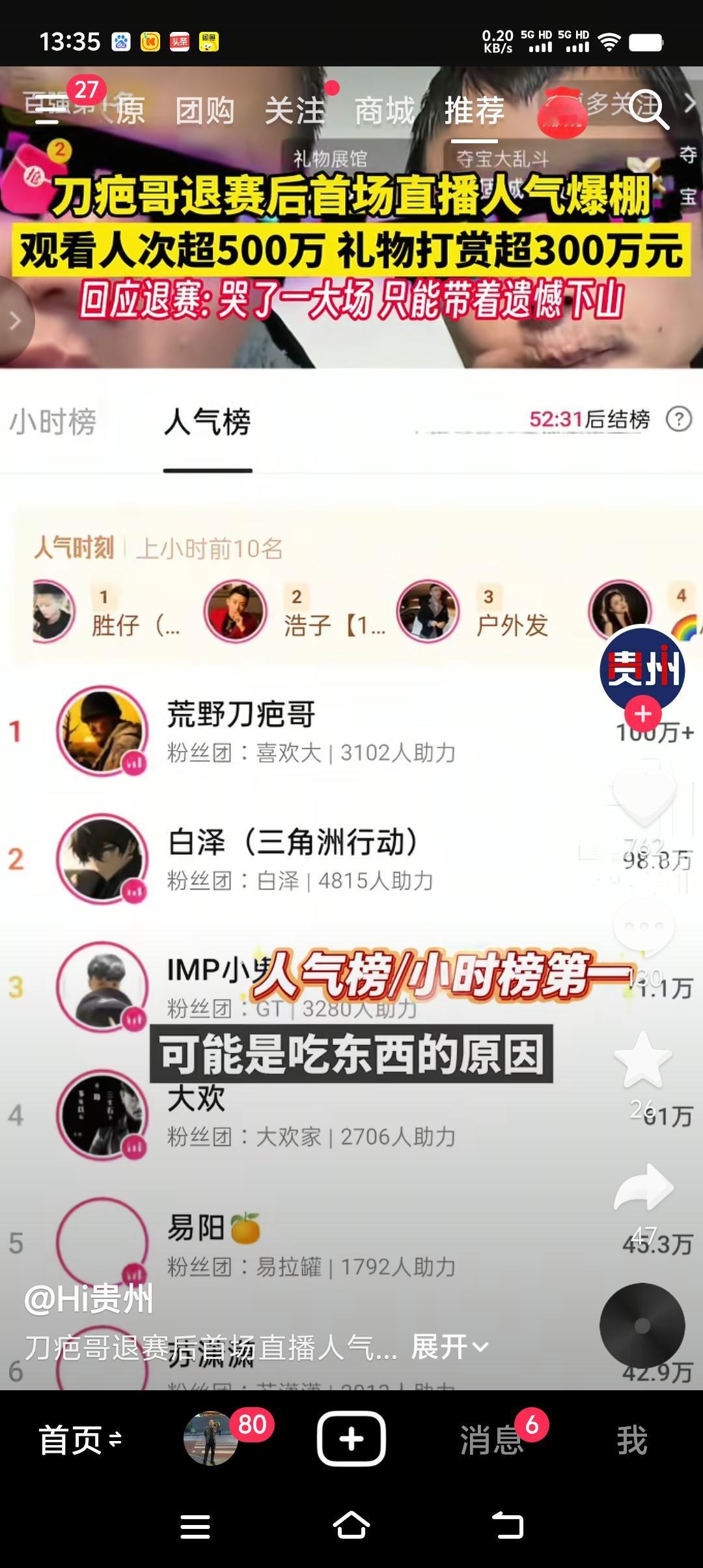 刀疤哥本名杨小勇,1995年出生,小学文化,贵州毕节织金县人。家境贫寒,世代为农,母亲因病早逝,父亲患有耳聋。曾有过一段婚姻,因经济压力妻子在孩子一岁多便选择了离开。如今孩子11岁,由爷爷照料,刀疤哥是名油漆工,在外负责挣钱养家。最大的愿望就是为父亲治病和盖新房,还有就是给儿子一个更好的生活。如今“荒野求生”帮他实现了,不得不说主办方就是他生命中的贵人。 一场直播打赏收入80多万,可以说是逆天改命。这波流量能持续多久,我们不知道。但有一个不争的事实,那就是一个网红要想走的更久更长,必须拿出一些真本事,否则海水退潮之后,你就是那个裸游的人。