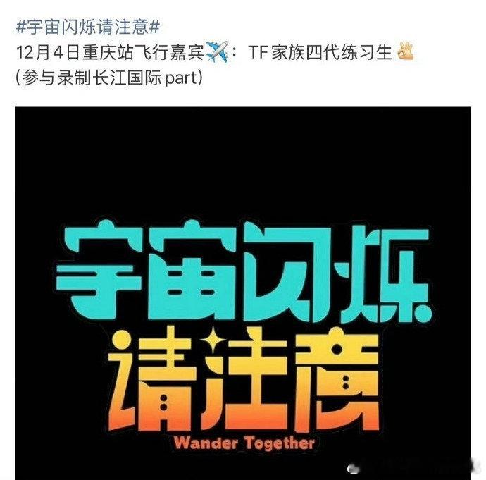 TF四代参与录制宇宙闪烁请注意 网传 TF 四代录《宇宙闪烁请注意》,跟着刘耀文
