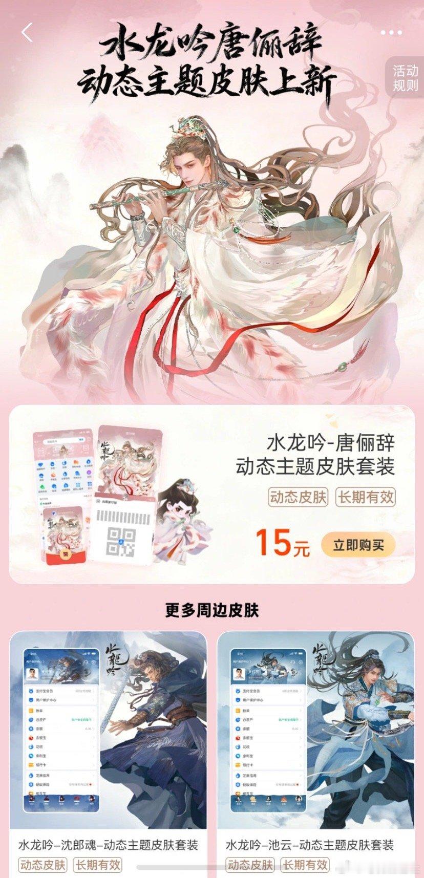 罗云熙主演的《水龙吟》和支付宝联名了!长尾效应🈶!大家都换上唐俪辞皮肤了吗?真的好美貌啊!水龙吟支付宝联名水龙吟联名支付宝支付宝水龙吟联名