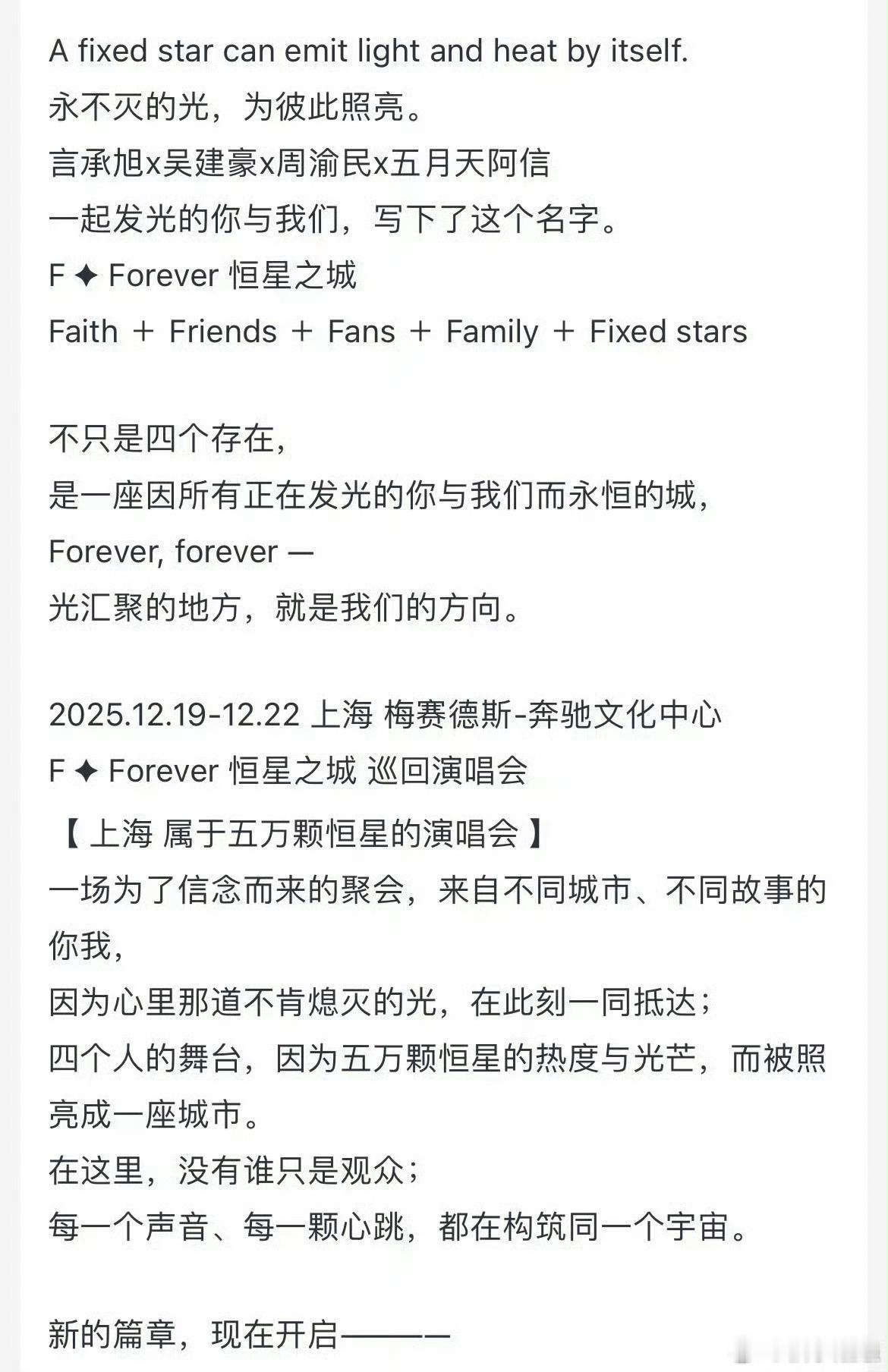 阿信代替朱孝天加入F4演唱会 这可能是今年最反转的青春续集了。F4重组变F3,阿信不是“代替”朱孝天演唱,而是从撮合者变为了“制作人”,为剩下的三人打造全新巡演。从“把四个凑齐”到“为三个护航”,阿信完成了从“圆梦人”到“总策划”的身份跨越。只是看着宣传中只提“3人”的官方回应,那个曾努力减肥想跟上队伍的成员,终究成了被划掉的名字。