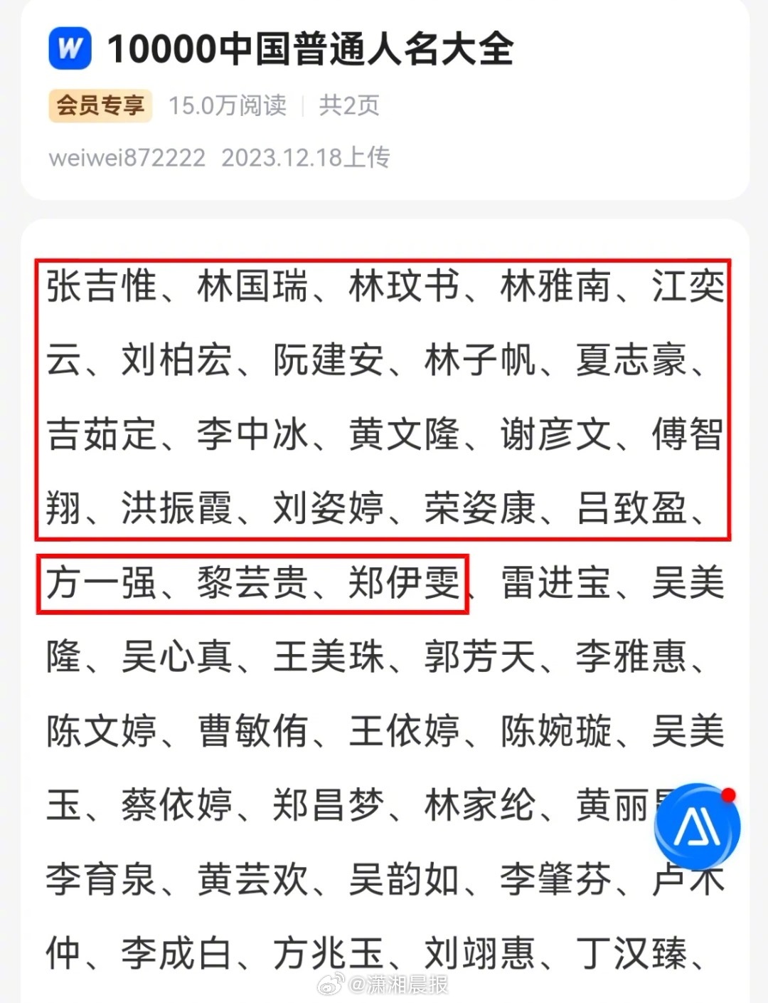 【广东一#健康研究院部分人员姓名被指来源网络#,#当地回应健康研究院部分姓名来源网络#:将会核实】12月3日,有网友反映,一名为“体培健康研究院”的广东企业,其官网公示的中老年健康项目研究员名单,名字来自于百度文库《10000中国普通人名大全》,且系从文档第一个名字起按顺序照搬,网友质疑该企业相关宣传不实。记者致电该研究院一杨姓工作人员,其表示自己为研究院的招生老师,询问记者是否为报考学员或是要咨询课程,记者说明情况后,该工作人员称这些研究员为研究院的合作人员,“如果说跟他们有合作的话,会授予他们一些相关证书。”记者再次说明研究员名单不实,为人名大全文档里的名字,该工作人员称“我也没办法告诉你说是真的还是假的。”对于名单真实性,其表示“无法核实”。天眼查显示,广东省体培健康研究院的企业登记注册地为惠州市惠阳区,目前,记者已向惠阳区市场监督管理局反映这一情况,工作人员表示,记者将相关证据提交后,会对上述公司可能涉嫌违法的行为进行核实。截至发稿,上述企业官网已将研究员信息隐藏。潇湘晨报记者段颖琪 朱天翔 广东