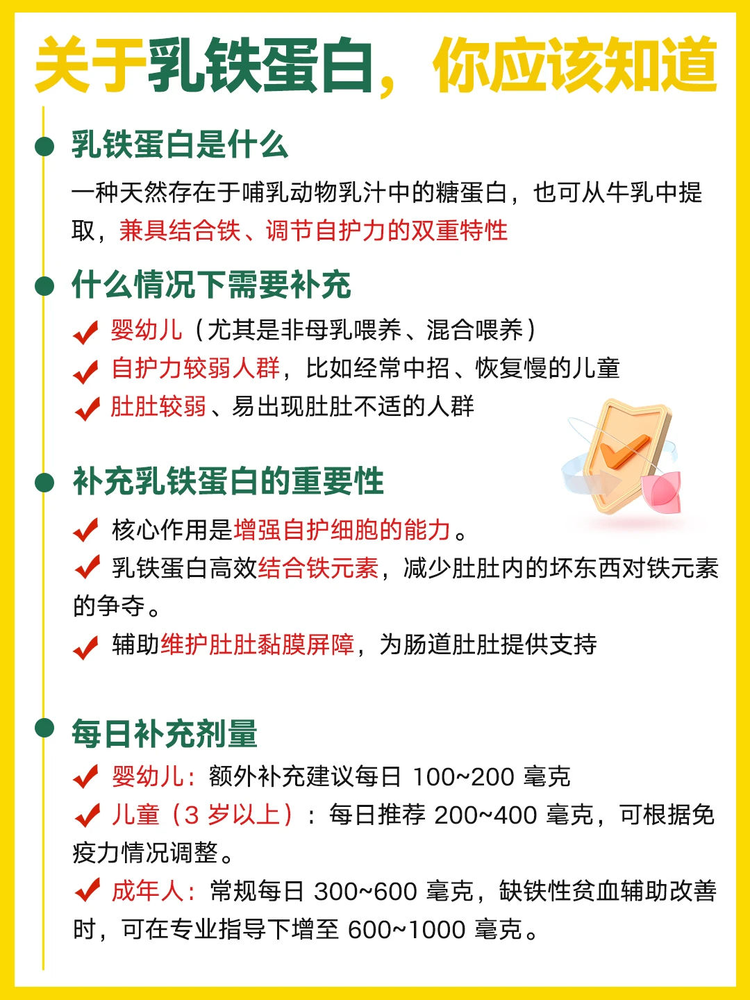 🌟特别是6个月后母乳中的乳铁蛋白慢慢减少,适当补充真的很有必要