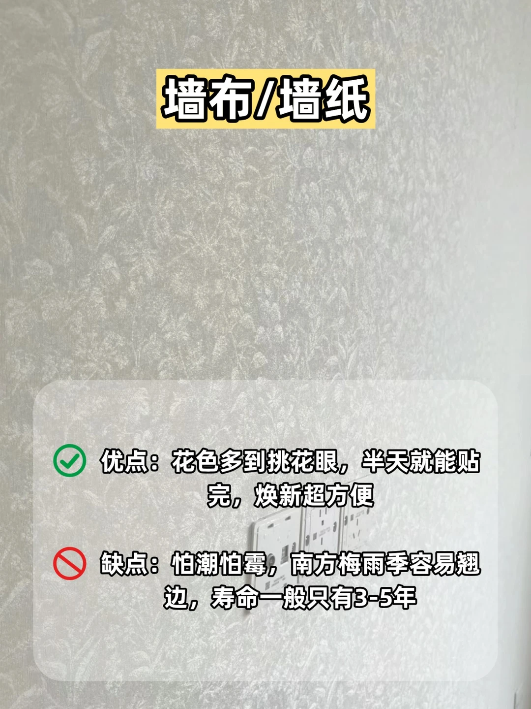 📍优先选无缝墙布,接缝处不容易翘边。南方宝子慎选!胶水一定要用糯米胶,比普通胶环保10倍