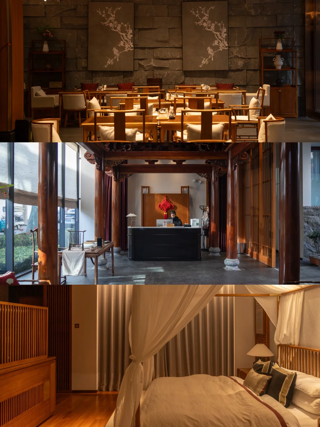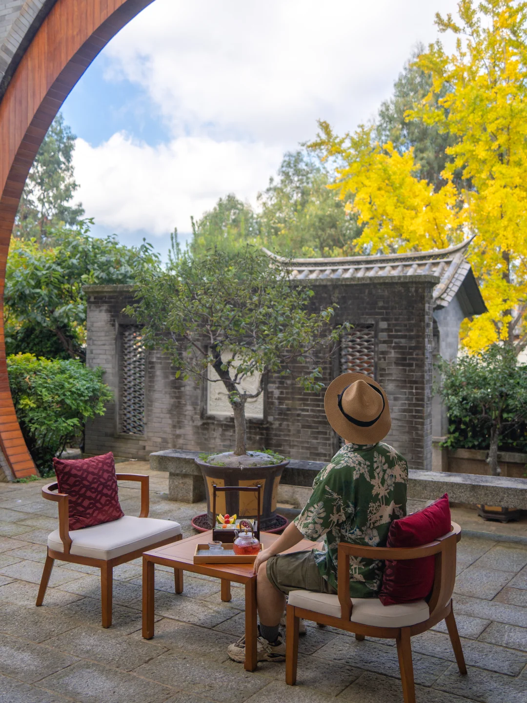 一进门就被中式园林设计拿捏住,青砖灰瓦配翠竹,处处都是细节,瞬间隔绝古城的喧嚣,沉浸式感受这份静谧