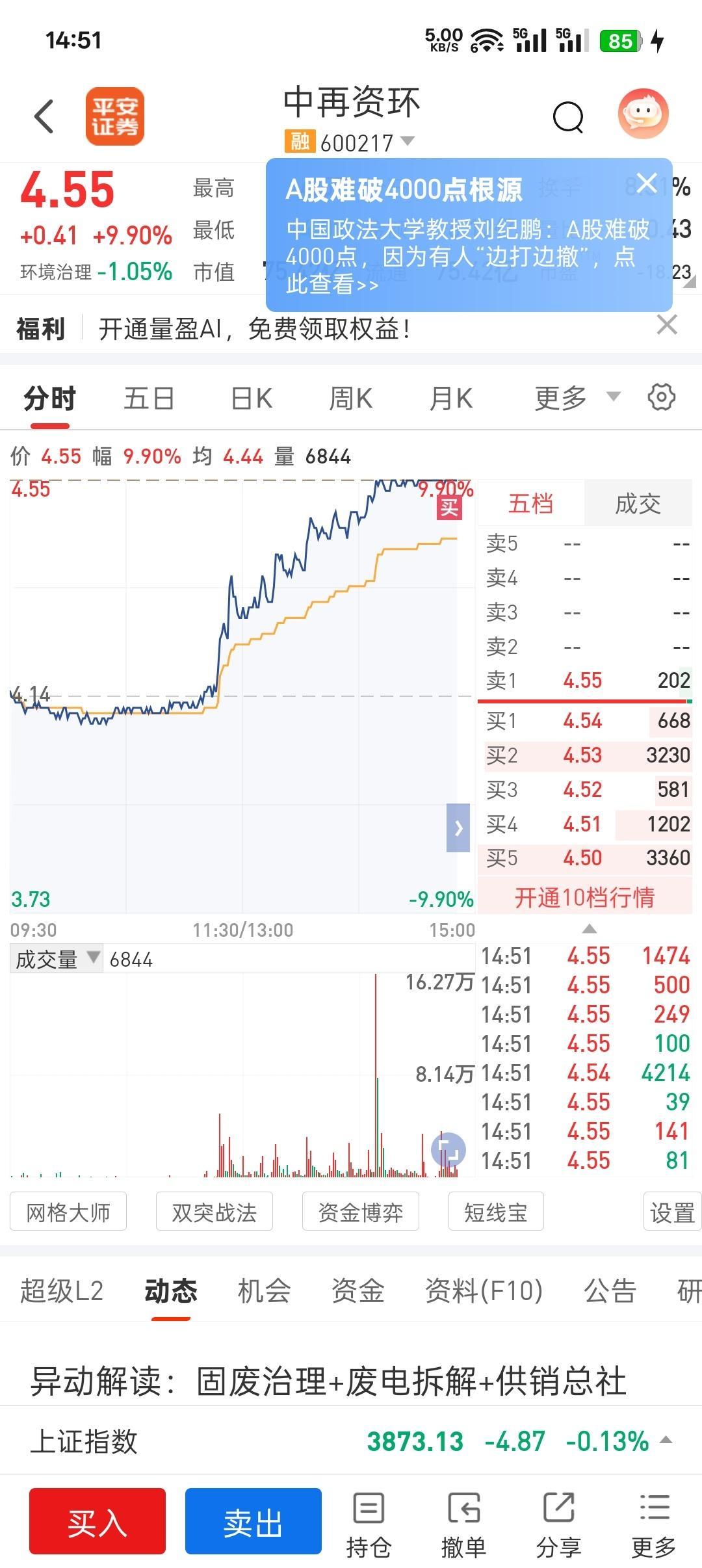 打了个目前看来很弱的首板:中再资环。