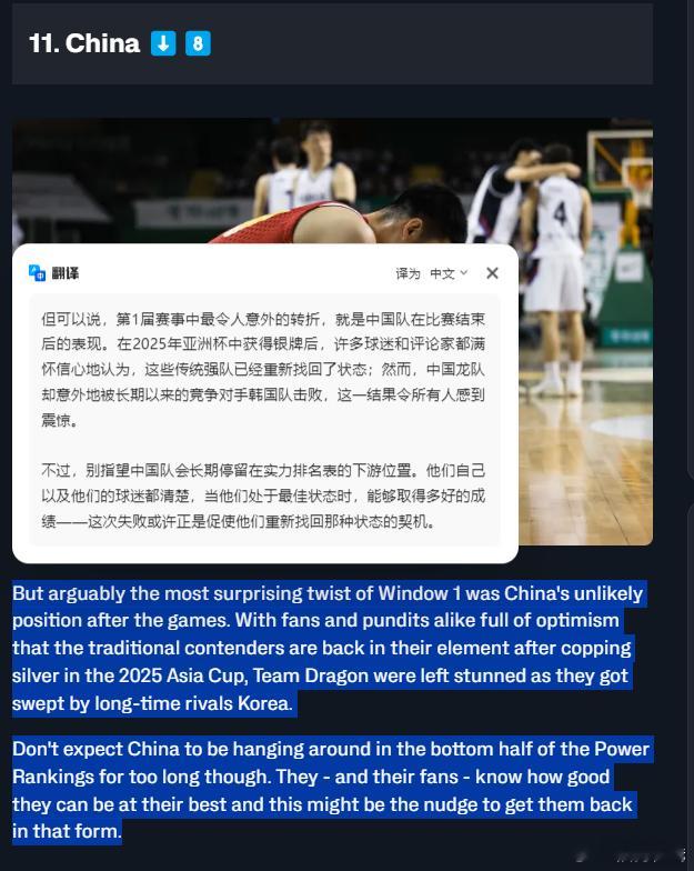 第一窗口期两败韩国后,中国男篮在实力榜上直接来到了第十一位……FIBA官方的这个