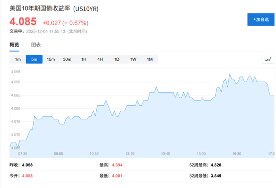 然而,尽管市场对此高度关注,但美国国债收益率在周四表现平稳基准10年期国债收益率维持在4.08%,对政策敏感的2年期国债收益率微升1个基点至3.50%。