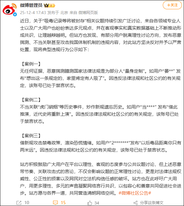 站方积极鼓励广大用户在平台以理性、客观的态度参与公共议题讨论,但上述恶意带节奏、关联攻击式的言论,不仅会影响议题的正常理性讨论,更是对法律法规权威性、公正性的损害以及网民对立法机构信任感的破坏。站方也在此呼吁广大用户,用更多理性、多元的声音凝聚网络言行共识,以包容心和善意共同促进社会进步。站方愿与各界一道,共同营造清朗网络空间。