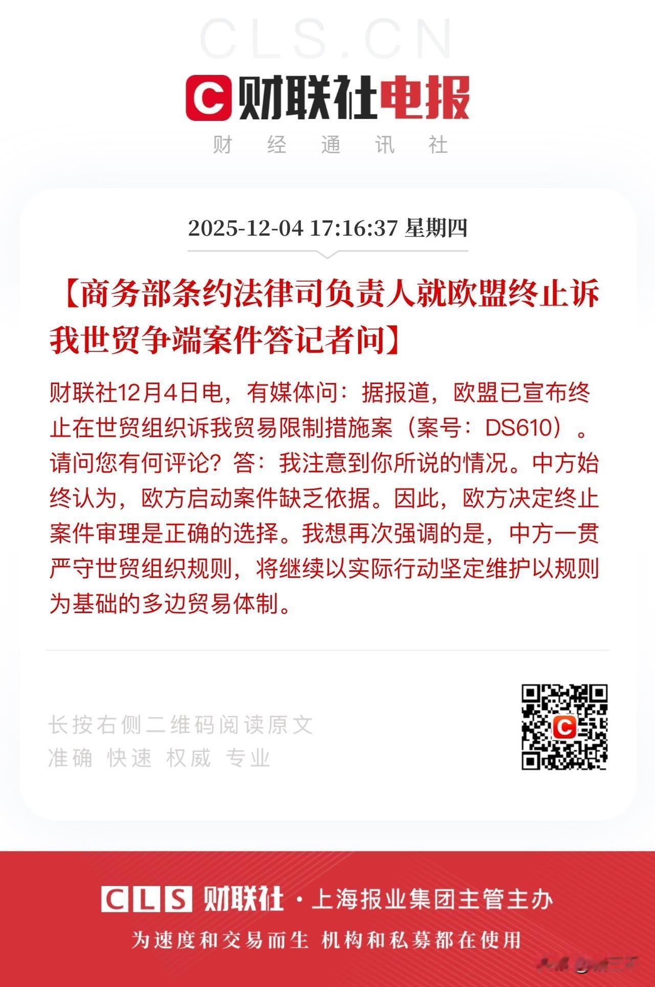 盘后两大利好, ⒈央行12月5日开展1万亿元买断式逆回购。这是向市场投放净流动性。相当于变相降息了! ⒉欧盟撤诉!欧盟终止诉讼我国世贸争端案件。 咱虽然不知道欧盟幡然醒悟诚意几何? 但小学生都看得明明白白的, 欧盟2027年要彻底切断俄气, 改为进口卡塔尔和美国的天然气。 但是卡塔尔和美国又是从俄罗斯手上买的, 换了个名头罢了, 关键价格翻番。 那欧猪岂不是成了大冤种? 这就非常有意思了… 如果从东大这边买, 虽然东大也是转手的俄气, 但是算上船员费转口贸易的税费和利润, 可能价格也只要美气的7成左右, 这个账老欧应该能算明白! Ai时代要是没有能源, 那么老欧家会被时代抛弃…
