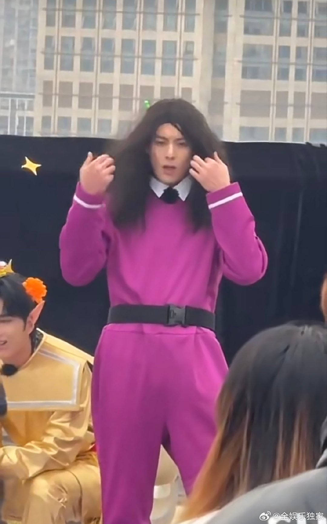 你跟我说这是王鹤棣 谁来管管造型师!王鹤棣紫衣加大波浪,陌生感拉满,想拨开头发帘看看是不是熟悉的棣棣~