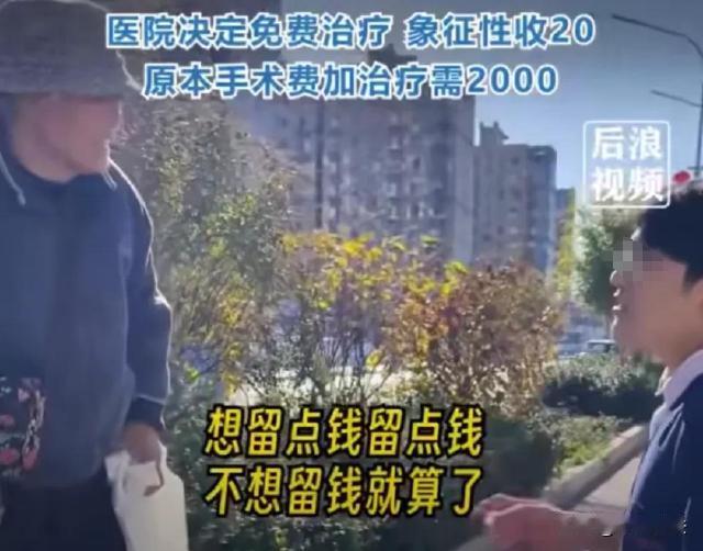 河北,一位大妈用蛇皮袋装着一只小猫,驾驶着着三轮车驱车两小时赶到市区宠物医院,希望有医生可以帮小猫治病。医生检查之后发现小猫肠道卡东西引发肠梗阻,需要立即进行治疗。得知手术费需要2000元,大妈无奈的摇摇头,将病猫又装回蛇皮袋,略带遗憾的准备离开。医生万分不舍,追去拦住大妈表示:来治疗吧,我不想它死,费用我来想办法。 据资讯新角度12月4日报道称,接下病猫之后,医生立即给它安排了手术。快要康复出院时,大妈非要给一百元治疗费,医生最后象征性的收取了20元,用善意换回了猫咪的小命。 6个月前,留守老人张大妈(化姓),儿女常年在外工作,老人家一人独自在家生活。日子很平淡、也很孤单,但是这一天却走来了一只狸花猫。 张大妈看到这只狸花猫特别可爱,让它走也不肯离开,就想要在张大妈家安家落户。大妈有小猫的陪伴,再也没有感到孤单。直到最近,小猫突然生病,也不肯吃饭,每天还呕吐。 看到小猫如此难受,张大妈也非常心疼。她拿起一只蛇皮袋,在里面铺上棉花,给小狸花放了进去。然后跨上了三轮车,驱车2个小时,来到市区准备找寻宠物医院。 医生当时正在屋内整理动物病案,看到张大妈急匆匆走进来,从蛇皮袋里拎出一只狸花猫。大妈关切的说,猫咪生病了,希望医生给检查一下。 看到眼前这只病猫,虽然病怏怏的,但是还挺胖呼。经过检查,发现小猫患上了严重的消化道疾病,肠子被异物堵住,需要立刻进行手术。 听到要做手术,张大妈弱弱的问道需要多少费用。医生说,大概需要2000元左右。听到这个数字,大妈有些为难,思考半天之后,她无奈的又把猫咪给装回了蛇皮袋,然后转身就要离开。 医生也看出了张大妈的难处,因为大妈是一位留守老人,生活费靠儿女支持,一下子拿出这么多钱确实费劲。眼看着大妈就要跨上三轮车离去,医生赶紧追上去。 大妈,你等一下,我不想让它死! 医生冲了出去,他决定给这位小猫治疗,并且从大妈手中接过了蛇皮袋。医生表示,费用这块不用操心,他来想办法解决。 随后,小猫就开启了治疗生活,住院1周左右,医生通知大妈过来接小猫。再次来到医院,张大妈看到小猫咪恢复的很不错,甚至还给大妈表演了一场“大口吃饭秀”。大妈非常开心,从口袋中拿出一张百元大钞准备给到医生。 大妈说:你一定要收下,不然我不依的。医生见了,让大妈象征性给20元吧,不需要这么多钱。大妈开心的抱起小猫,并且交代猫咪:快点跟好心的医生告别吧! 回家途中,大妈的笑容非常灿烂,医生也露出了放心的微笑。康复之后的小猫咪,又可以继续陪伴张大妈了。 很多网友看完这则新闻,纷纷留言:善良不分大小、爱心跨越物种;医者仁心,小伙子用真诚温暖了整个冬天。 医生面对生病的小猫,考虑到张大妈无钱给猫治病,于是自掏腰包给病猫治疗。医生的做法彰显了怎样的素养呢? 第一,体现了生命至上的职业伦理。 依据《医务人员职业道德准则》规定,作为执业医生需要将“尊重生命”延续到动物中。虽然动物不是人类,但是救治动物也属于医疗范畴,救助动物的爱心行为已经体现了作为医生的职业素养。 本案中的医生,积极救治生病的小猫,得知老人家无钱支付,他主动承担了医疗费用并且成功救活了小猫,这个行为深受好评。 第二、体现了这位小伙子医生可以担当责任。 根据《野生动物保护法》规定,倡导每位市民去保护野生动物,这是责任也是义务。利用医疗手段挽回动物的性命,则更加展现了“大医精诚”的传统医德。 本案中的医生追出医院挽留小猫,就是想要尽力救助小猫、挽救它的生命,不仅体现了医者仁心的价值观,也履行了保护流浪动物的义务。 另外,面对经济困难的老人,医生没有机械的执行收费标准,但是也没有简单的完全免除,而是象征性的收取20元,此举也彰显了医疗伦理跟人文温度。 对此,真的是需要给这位医生一个大大的点赞。大家认为呢?