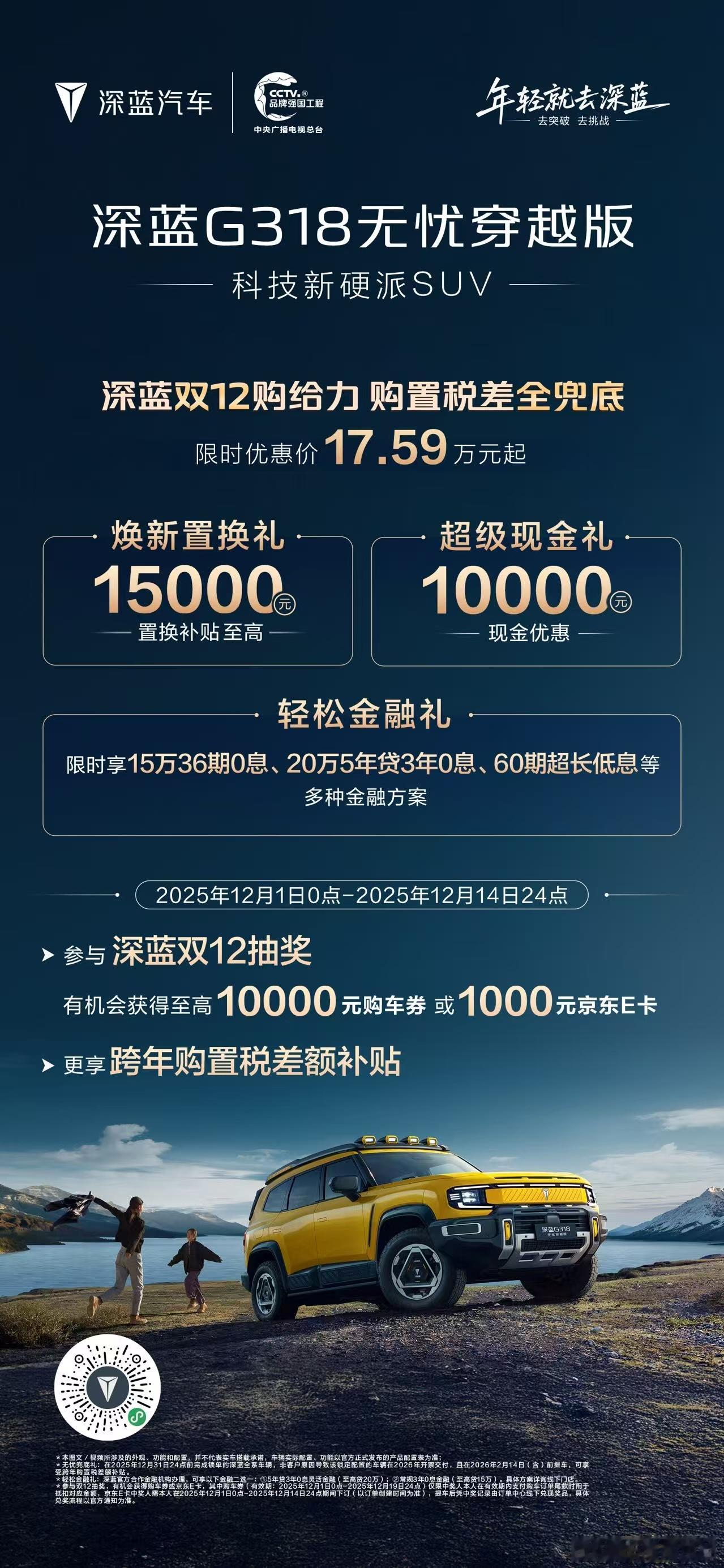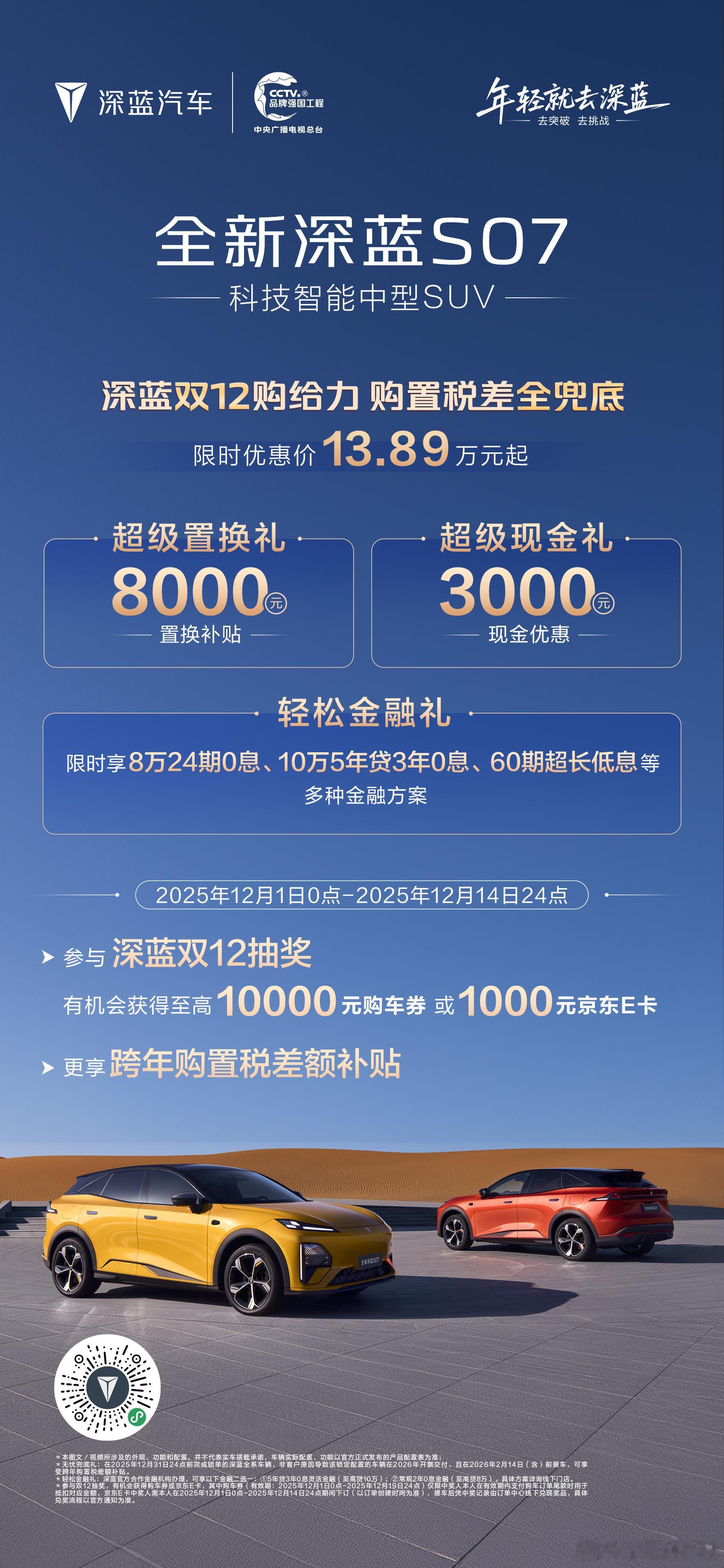 即日起至12月31日,锁单深蓝汽车全系车型,并在2026年2月14日(含)前提车