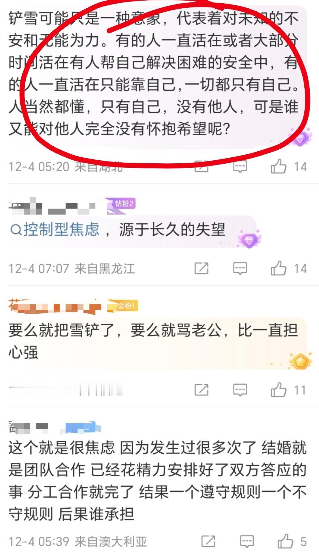 特别特别典型的婚姻场景,多少男的就这么逼疯另一半然后再轻描淡写说她太暴躁焦虑。我就有点这种焦虑,铲雪其实是很小的事,但生活里的各种小事多了堆积在一起就超级烦躁去年关系很好的发小住我家半年多,她就有点大大咧咧不太在意这些,跟我生活习惯又不太一样,到后期我都有点忍不了,类似这种小事叮嘱几遍答应得好好的就是一直拖一直拖,我忍了又忍差点爆发,她走了之后我松了口气所以一直很清楚自己不适合婚姻,大部分男的就是眼里没活儿,而我做不到完全无视那些家务事却又不是付出型人格,但凡我做多点绝对会心生怨气,一个人生活就不用计较谁付出多少🤣不过想想我爸妈从小催我起床吃饭也这么烦躁吧,花了好多年才接受我就是喜欢赖床不吃早饭也要睡到中午才起来的懒货网页链接