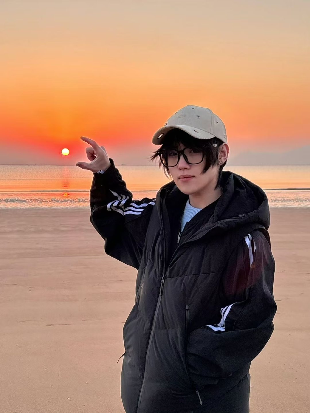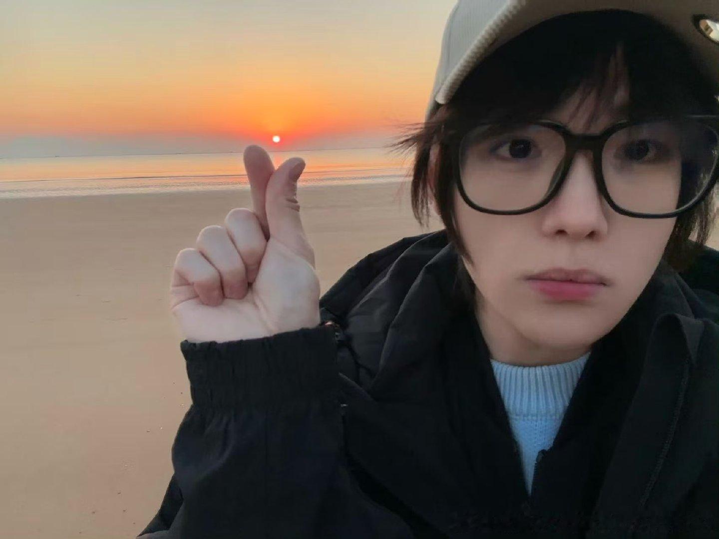 AG司马光带网友早起看日出 冷飕飕的清晨,却有橙黄渐变的天空和少年清澈的笑容~
