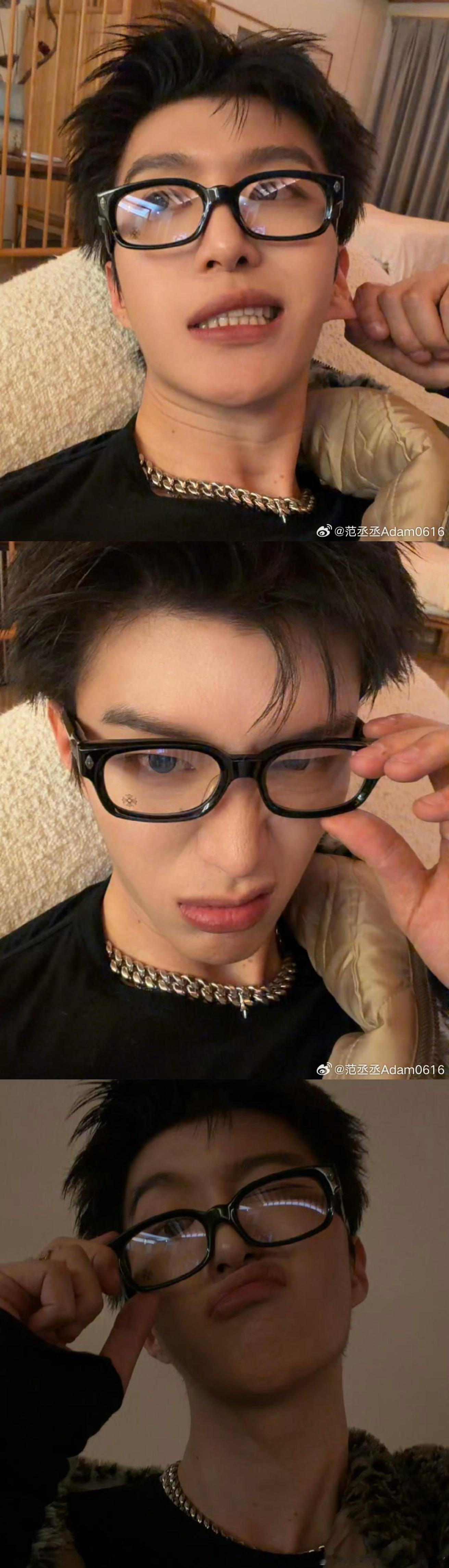 范丞丞黑框眼镜自拍,请帅哥以这个造型来个🫘舞吧