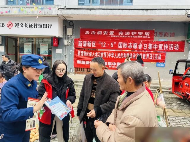 为深入学习宣传宪法精神,提升社区居民消防安全意识与法治素养,12月4日,在第十二个国家“宪法日”当天,新蒲新区消防救援大队联合区社工部、区公安分局、新中街道办等多部门,以“宪法护航消防安全”为主题开展精准宣传活动,走进新中街道办松源社区,通过“火焰蓝”联动“法徽红”的方式,将法律知识与消防安全技能送到群众“家门口”。
