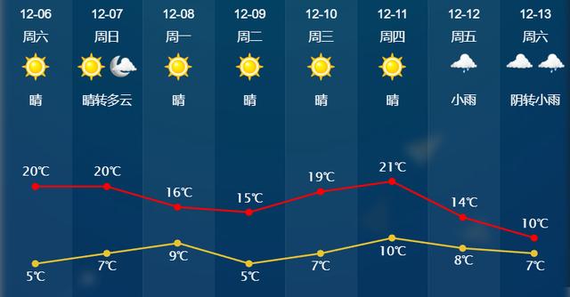 入冬晚了,秋天就变长了。根据市气象局预报,未来七天,绍兴持续晴天,受辐射降温影响,明后两天早晨,气温依旧较低:平原地区只有3~5℃,会有霜;山区更低,只有0~2℃,有霜冻。早出晚归的朋友,外套要穿的厚一些,围巾帽子也可以准备上,尤其是老人和孩子,更要注意保暖。
