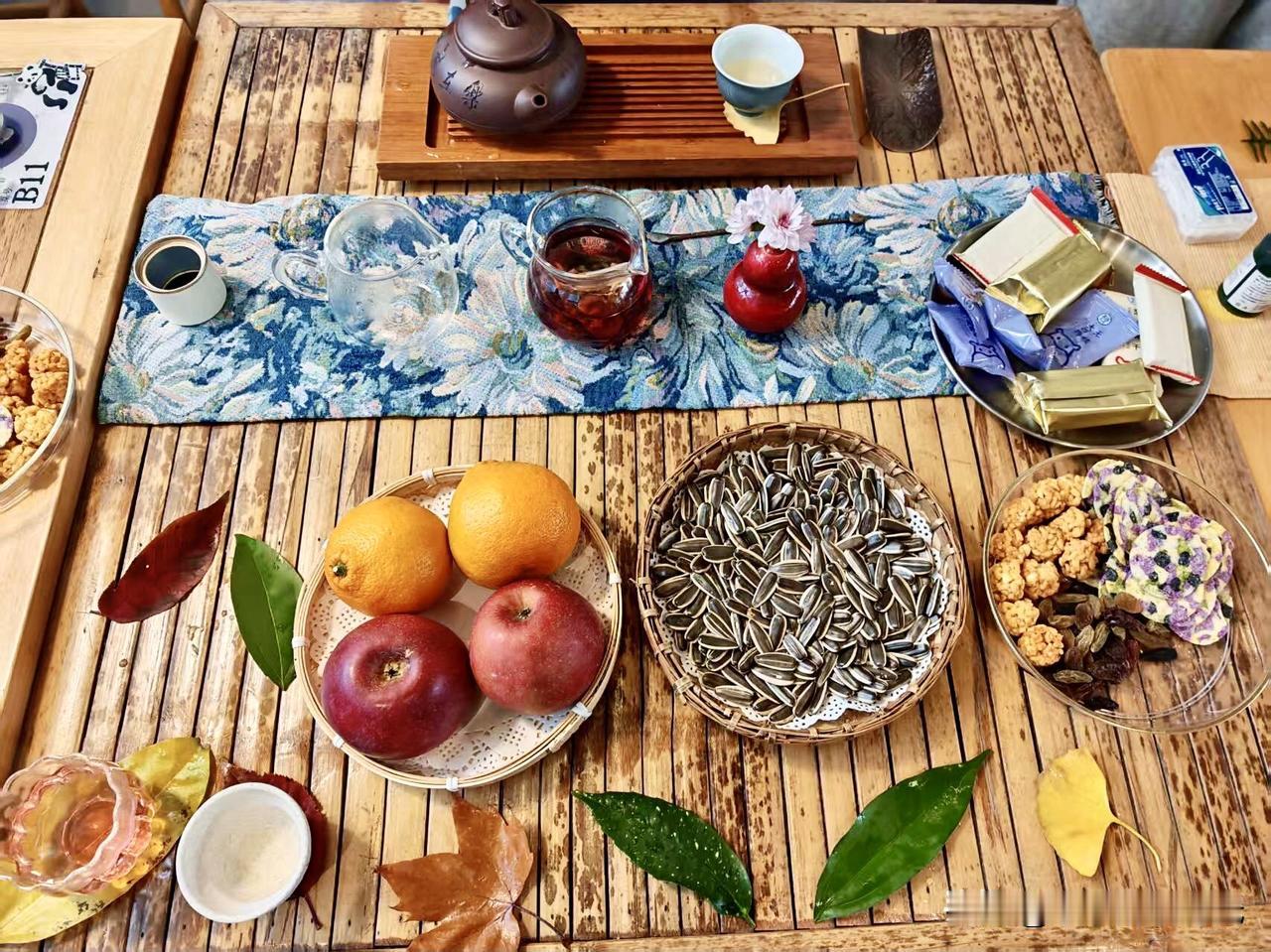 成都的秋,仿佛泼在绢上的淡金与赭红,茸茸的,带着水汽的温润;东湖,平静的水面,将天光云影与岸边的银杏,一并揽入。 周六这天,我迫不及待带着自己事先准备好的茶和茶具,直奔东湖公园,那里已有先到的同学找好了座位。 我把带来的茶具一一取出:一把紫砂壶,几个青瓷小杯,一只透明玻璃公道杯,一小束插在红色花瓶里的粉色菊花,以及一块黑檀实木茶盘,两张竹编茶席。 这些家什一摆上粗木的桌面,氛围感立刻拉满。 其实,成都各公园的茶园里,有现成的盖碗与竹椅,省事得多。 但我们总执意要带自己的。 这大约也是一种无言的仪式吧,仿佛唯有如此,才能从公共的、热闹的茶馆氛围里,开辟出一角全然私密的、独属于我们的空间。 11点左右,同学们陆续到场,一时间,欢声笑语,便如投石入湖,一圈圈漾开来。 大家各自带来了自己精心准备的食物: 手作的饼干盛在铁盒里,瓜子是刚刚好的焦香,水果洗得水灵,码得整齐,还有旧式的米花糖,咬下去是“簌”的一声酥脆。 更绝的是,还有红酒。 深红的浆液在玻璃瓶身里微微晃动,映着天光,是一种沉着的光泽。 将红酒倾入白瓷的盅里,加入切好的柠檬、桔子、苹果,一两枚丁香与肉桂,温热在一只小小的电磁炉上。 很快,便有极缠绵的甜香,混合着果味的清新与香料的暖辛,丝丝地腾起,氤氲在这清冷的空气里。 守着这炉暖香,一瞬间,仿佛有“煮酒论英雄”的意味。 茶,细细品,酒,慢慢喝,一边聊天,一边嘻嘻哈哈,打打闹闹,仿佛又回到了20多年前年轻的我们。 忽然想起古人那句词来:“欲买桂花同载酒,终不似,少年游。” 我们今日,不正载了酒么? 可那“少年游”的轻狂与无畏,那以为前路尽是花朝的懵懂,是无论如何,也回不去了。 “来,举杯!” 酒杯轻轻碰到一处,那声音并不清脆,是温钝的、实在的一响,像岁月本身的一声叩问。 来到合影的环节,你挽着我的臂,我搂着她的肩,秋风撩起发丝与衣角,镜头定格的,是一张张笑容舒展、眼角闪着细光的面容。 当我们沿着东湖散步,下午的天光,变成了一种柔和的蜜色,涂在金色的银杏叶上,涂在暗绿的湖水上,也涂在我们的身上。 谈论着这美丽的秋天,谈论着琐碎的家常,脚步放得极慢,慢到能听见枯叶在脚下碎裂的轻响。 纵然指缝太宽,岁月太瘦,只要和你们在一起,一颗心怎么也老不下去...... 欢迎关注@丁丁的慢时光 记录生活茶生活 记录美好的图片 #生活随手拍#
