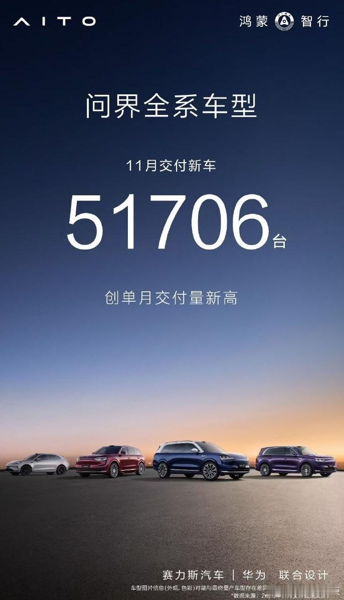 鸿蒙智行11月交付去到骇人的8万多辆,其中问界5万多辆,其它界加起来也有3万辆左