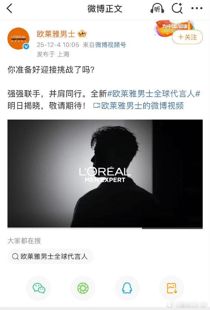 肖战空降全球代言人这波空降太惊喜了!肖战成为欧莱雅男士全球代言人,和吴彦祖、王嘉尔等前辈一样跻身型男梦之队,商业价值持续领跑~ 肖战空降代言