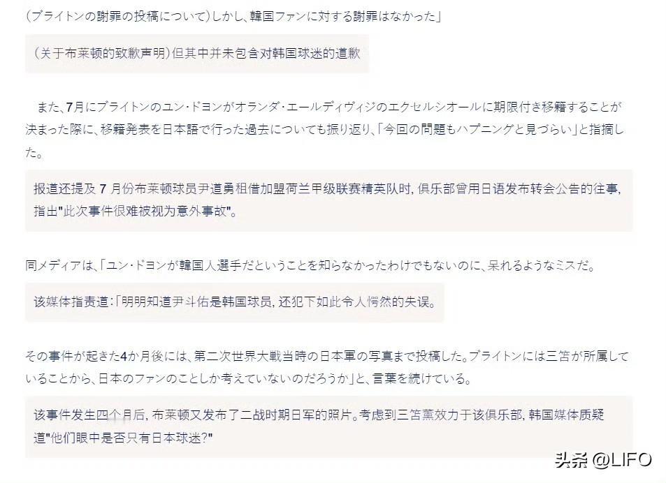 日本媒体报道:韩国媒体和菲律宾网民也要求布莱顿、三笘薰道歉。