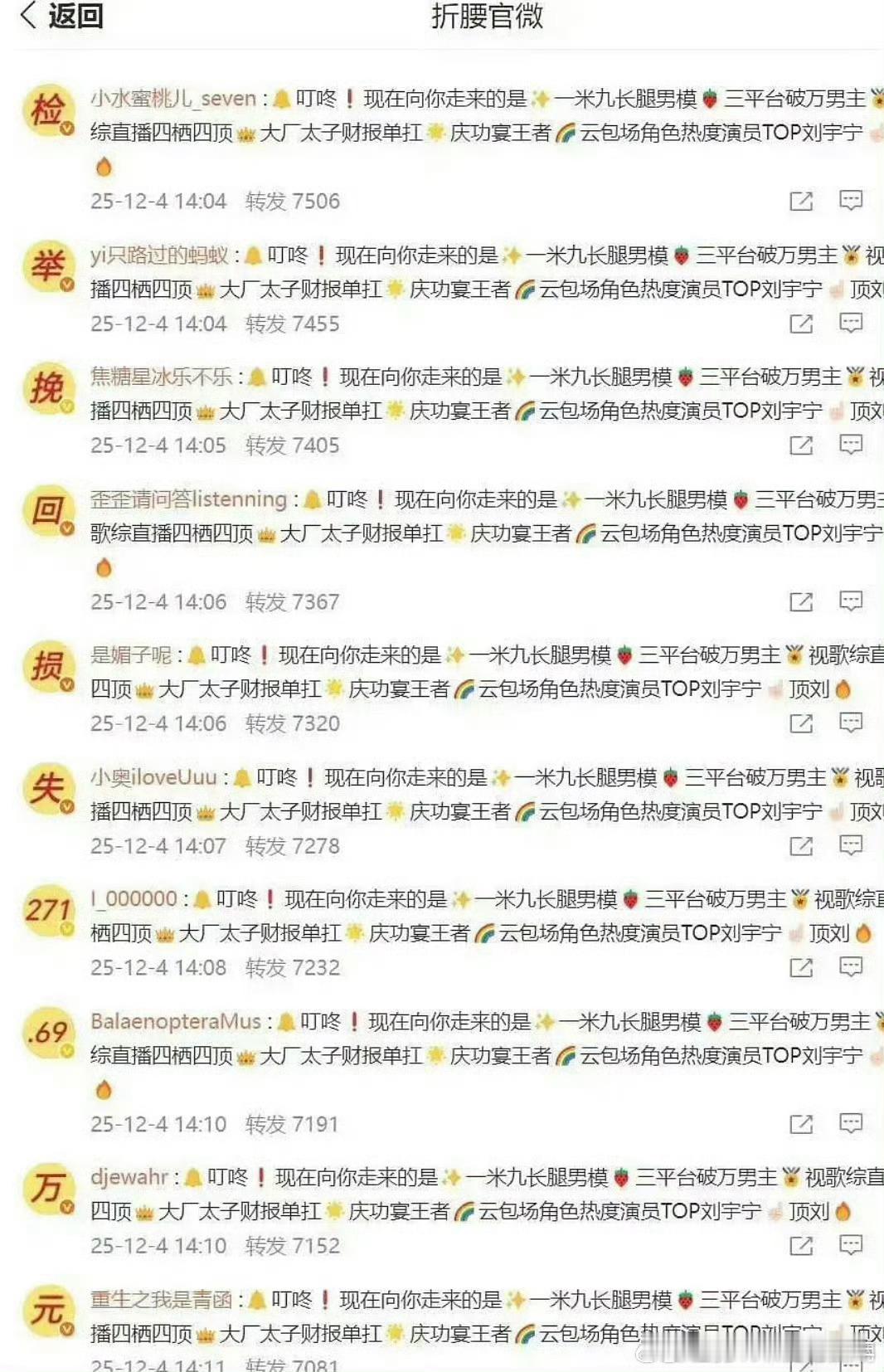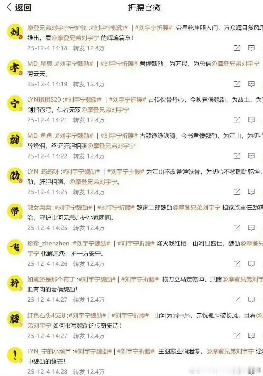 刘宇宁粉丝在折腰官博给宋祖儿排字!“刘宇宁魏劭带飞折腰”❗