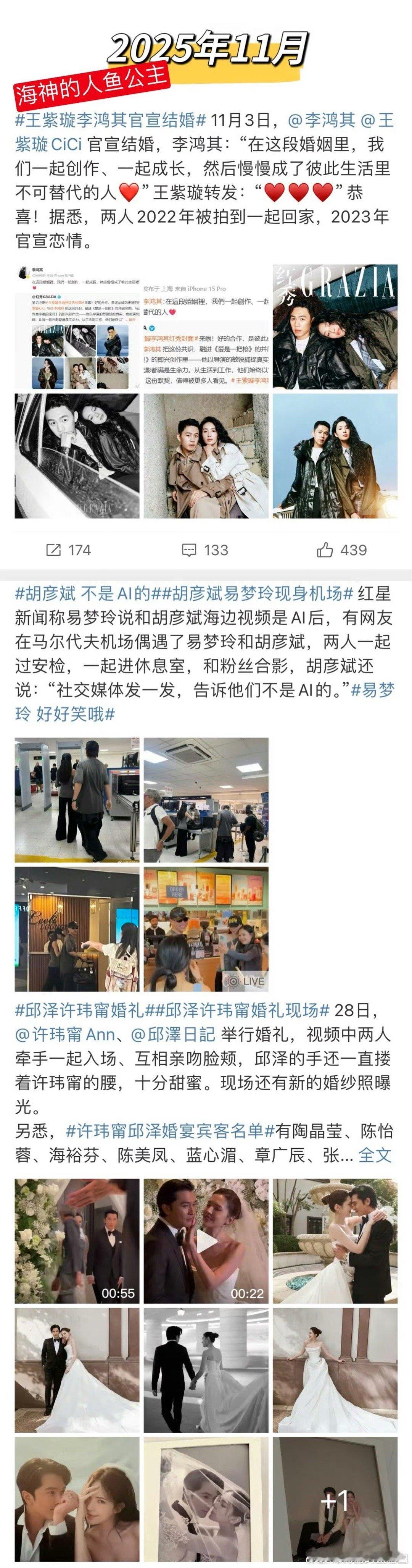 2025内娱婚恋孩子图鉴 年底复盘内娱感情线!恋爱、分手、结婚、生子全覆盖,反转