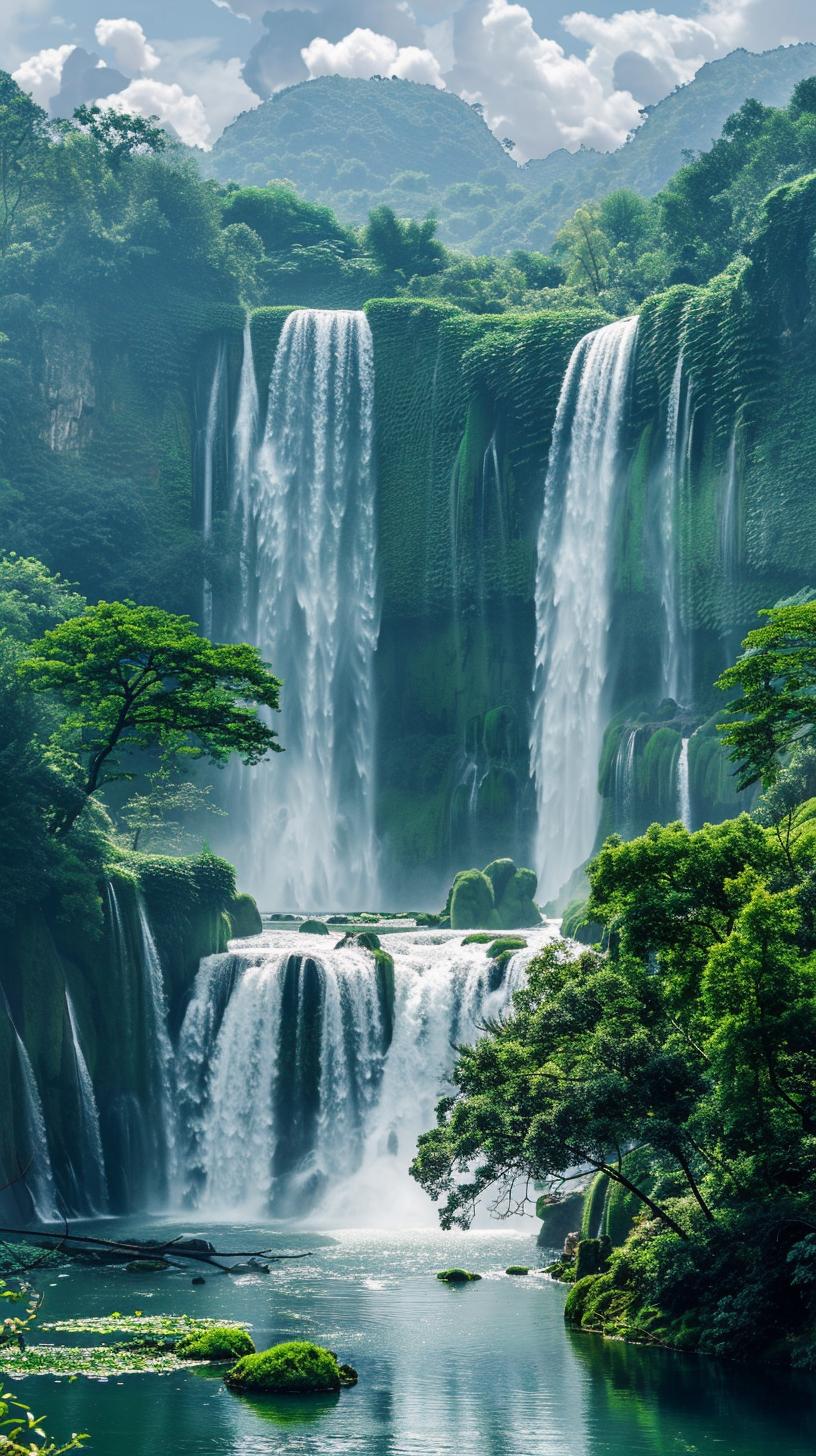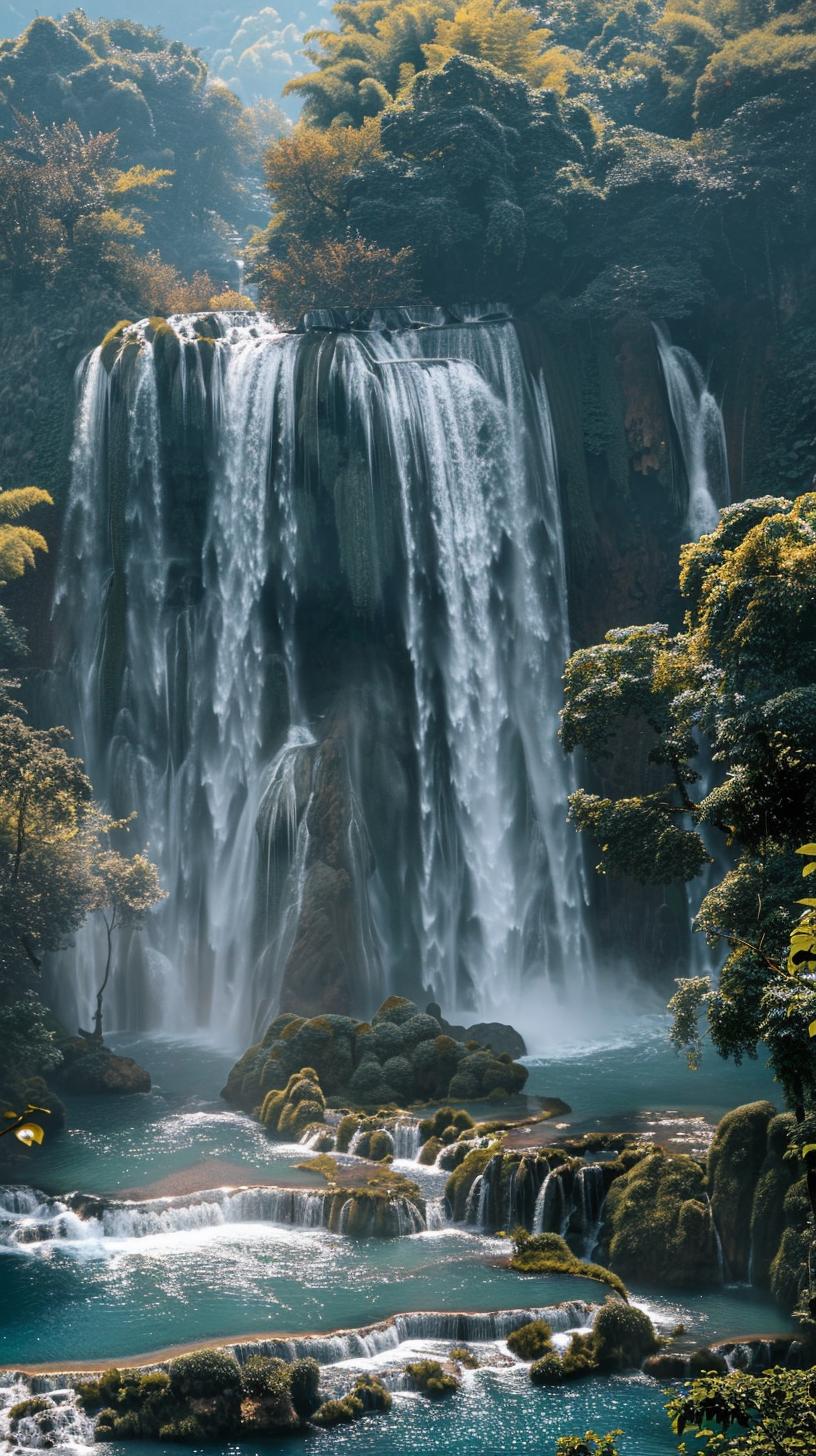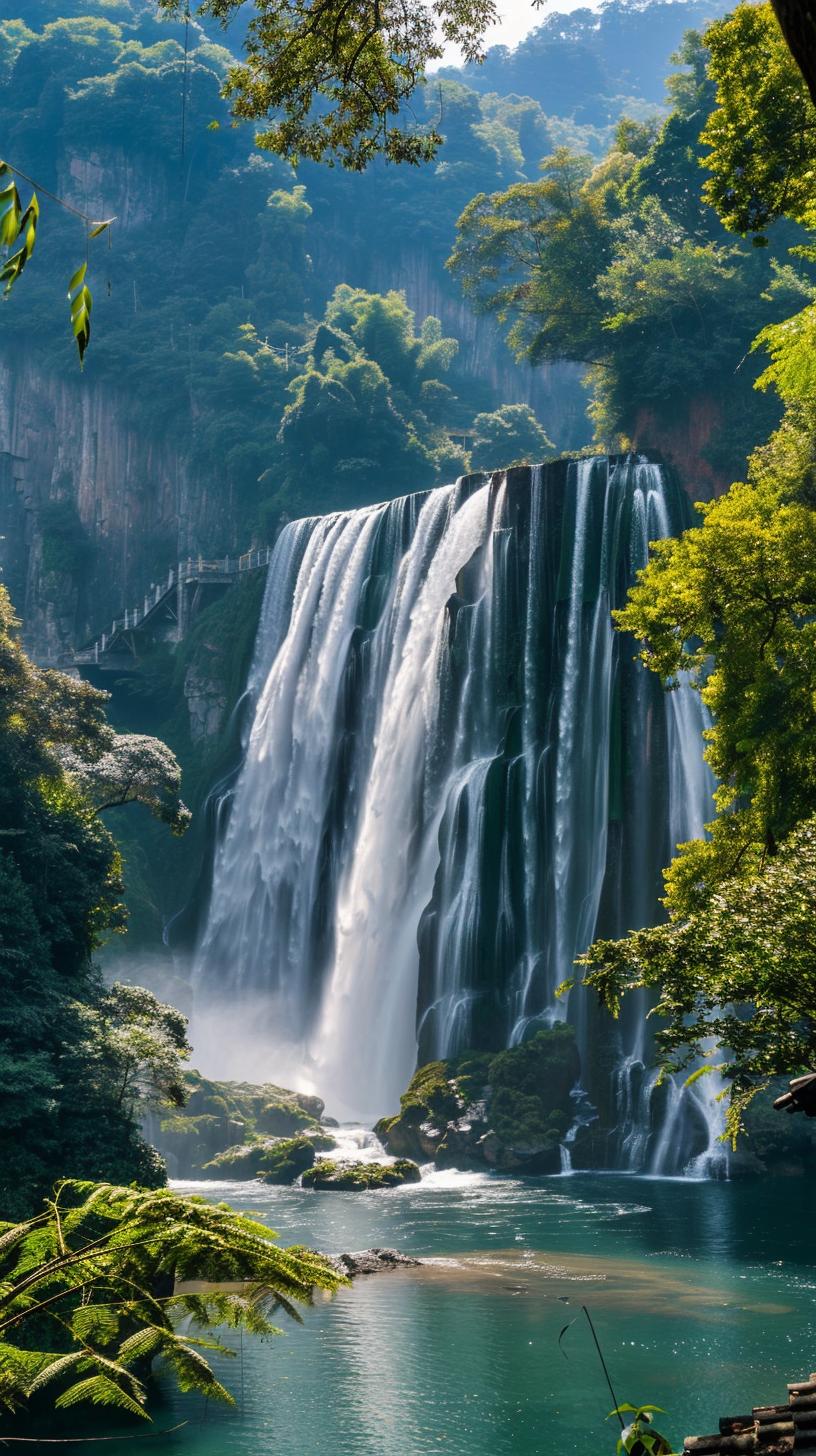 黄果树双瀑辞 你该在晨雾未散时来——先撞见陡坡塘那匹“卧在钙华滩上的银缎”。它是黄果树的序曲,105米宽的瀑面像被山风揉软的云,枯水季时水流漫过石滩,细得能看见水珠在苔衣上滚成碎钻;若逢雨季,它便成了“吼瀑”,轰鸣裹着水雾撞向崖壁,连风里都浸着雷霆的余震,是《西游记》里驮过师徒四人的那片涛声。 再往深里走,才是黄果树大瀑布——这是大地扯开的银河口子。77.8米的崖壁上,白水河砸下来时碎成万斛珠玉,徐霞客说它“捣珠崩玉,飞沫反涌”,可真站在观瀑台,你会懂那文字太轻:水雾裹着虹霓扑在脸上,连呼吸都浸着冰凉的碎响,瀑流砸进犀牛潭的震颤,让鞋底都跟着发麻。最疯的是钻进水帘洞,从瀑布背后望出去,银练似的水流在洞窗前垂成帘,伸手一触,满掌都是天河的凉。 这双瀑原是山的两枚心跳:陡坡塘是它温软的呼吸,大瀑布是它滚烫的脉搏,偏要在这喀斯特的褶皱里,把天地的灵秀泼成一场永远落不完的雨。