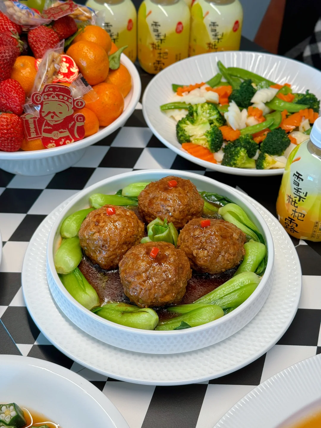 福禄寿喜狮子头,这道菜是年夜饭必备菜单~不用油炸也能一口爆汁的肉丸子 教程放在图上啦~这个大家一定要学会了给家人做~