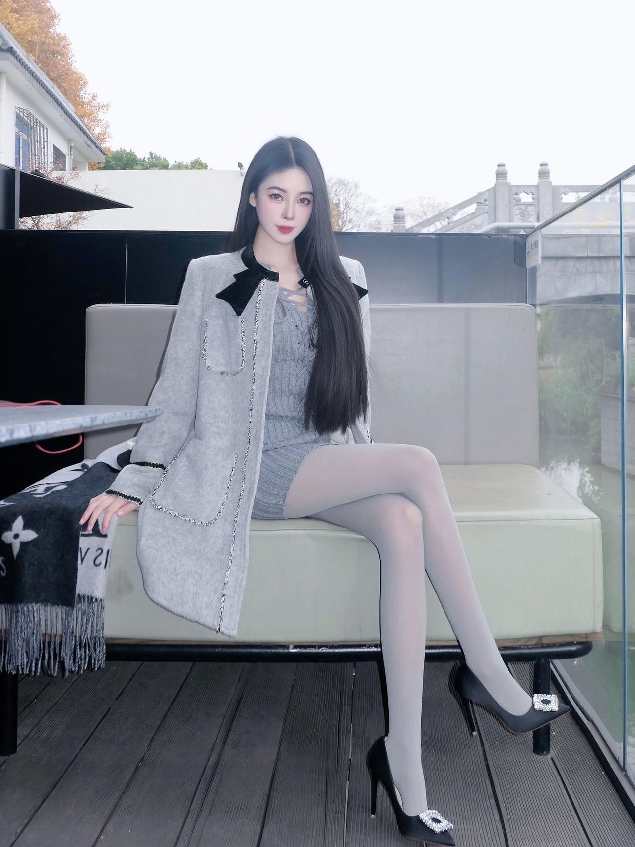 这组穿搭把“秋冬御姐感”焊在身上了! 浅灰色系叠穿自带高级滤镜:针织裙的绑带设计勾出清冷感,外搭镶边大衣甜酷平衡,LV围巾直接把贵气拉满。 最绝的是细节:浅灰丝袜衬得腿又细又直,配上尖头水钻高跟鞋,每一步都踩在“御姐气场”上——冷调穿搭+精致配饰,温柔里裹着生人勿近的张力,秋冬出街想不吸睛都难! 这种“轻熟风”适配下午茶、约会、轻通勤,怕冷的姐妹可以照搬公式:同色系叠穿+点睛配饰+细跟鞋,优雅和气场直接双丰收~大衣灰色穿搭 高级灰色穿搭 灰色系大衣穿搭