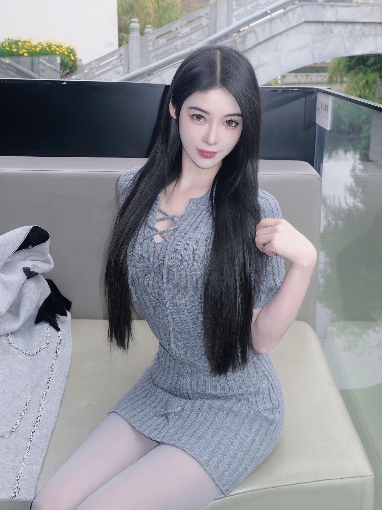 这组穿搭把“秋冬御姐感”焊在身上了! 浅灰色系叠穿自带高级滤镜:针织裙的绑带设计