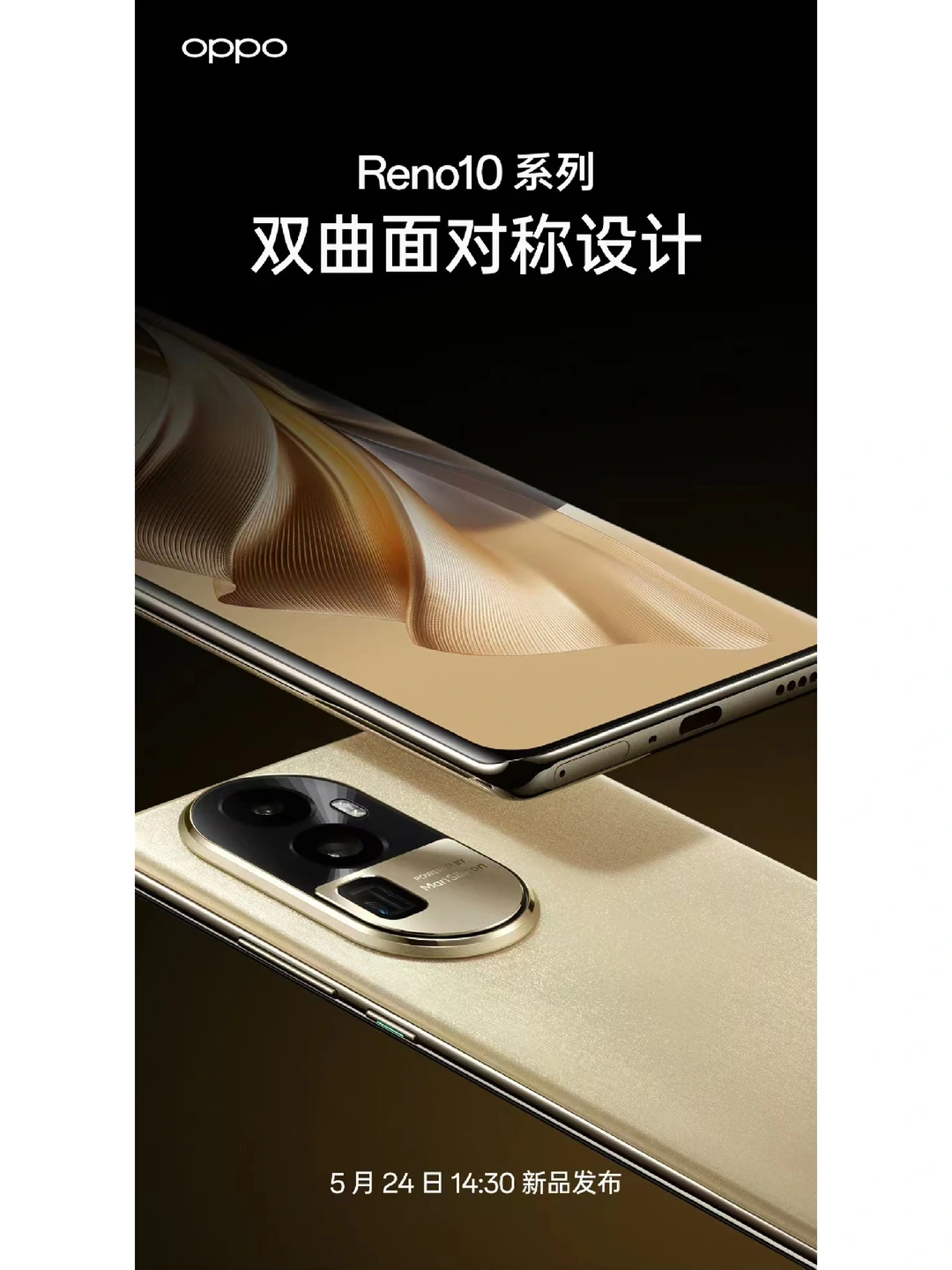OPPO5月24日发布新机,镜头模组全新设计,搭载马里亚纳芯片。OPPO Reno系列是我觉得中高端手机中挺值得推荐的产品,其他品牌手机在这个价位段要嘛主推性能要嘛主推质感,要嘛影像一般般。而OPPO Reno系列三者的平衡都挺好,轻薄质感是强项,性能也会上口碑好的旗舰芯或者次旗舰芯,影像也是重点发力项,不管是自拍或者后摄都不含糊。以至于3000价位段让我推荐手机,我脑海想起的第一个选项会是OPPP Reno系列,尤其是对女生来说。现在OPPO Reno10系列官宣5/24发布,外观照片曝光了,镜头模组重新设计,机身是双曲面对称设计,还带来了更优雅的灿烂金,你觉得前几代好看还是这一代好看?