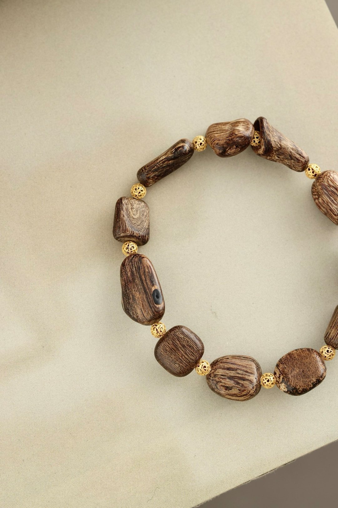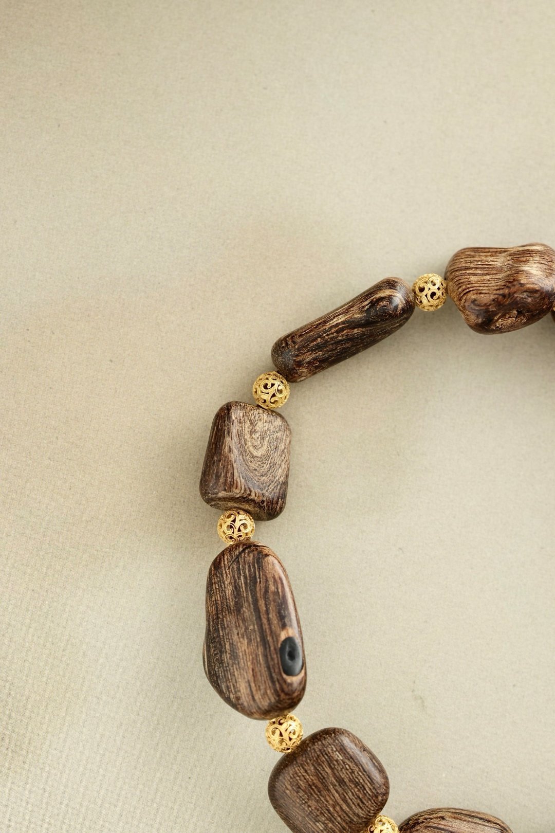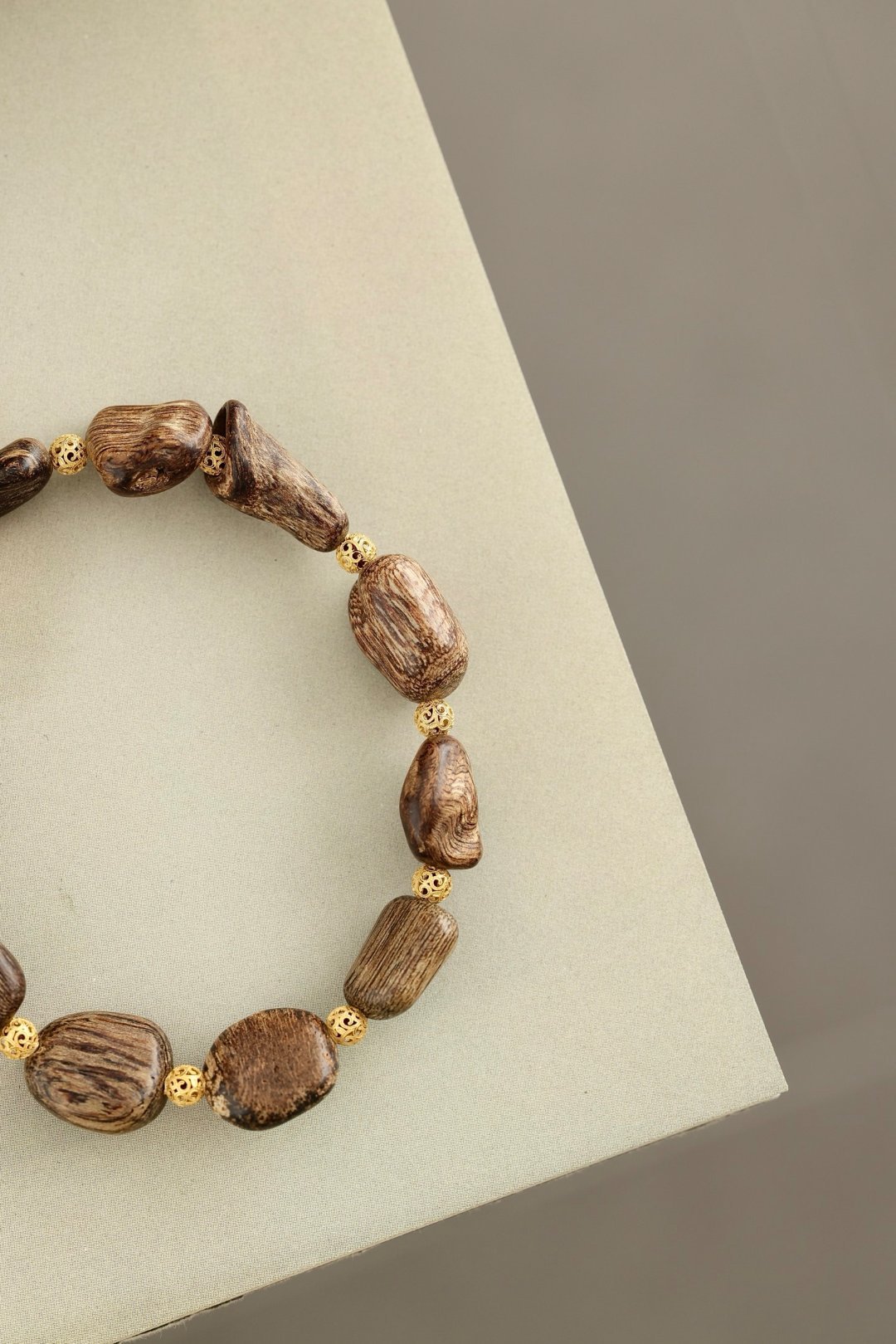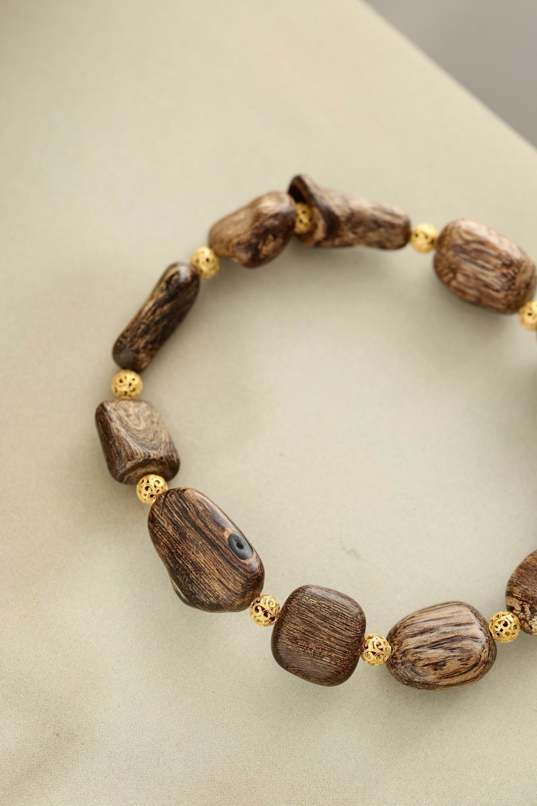 惠安沉香 | 随形手串沉水,香气高雅,甜韵饱满,随形打磨,质朴大气,银鎏金卷草纹