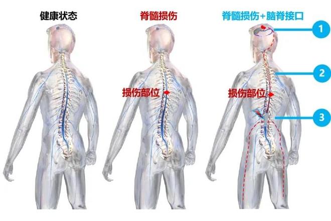 脑脊接口系统将两个直径毫米级的电极植入脑部运动脑区,另一电极植入脊髓。通过在大脑与脊髓间搭建“神经桥”,患者想抬腿时,脑部电极立刻捕捉信号,腰部电极精准刺激对应神经,让双腿动起来,使截瘫患者可以自主控制下肢行走。